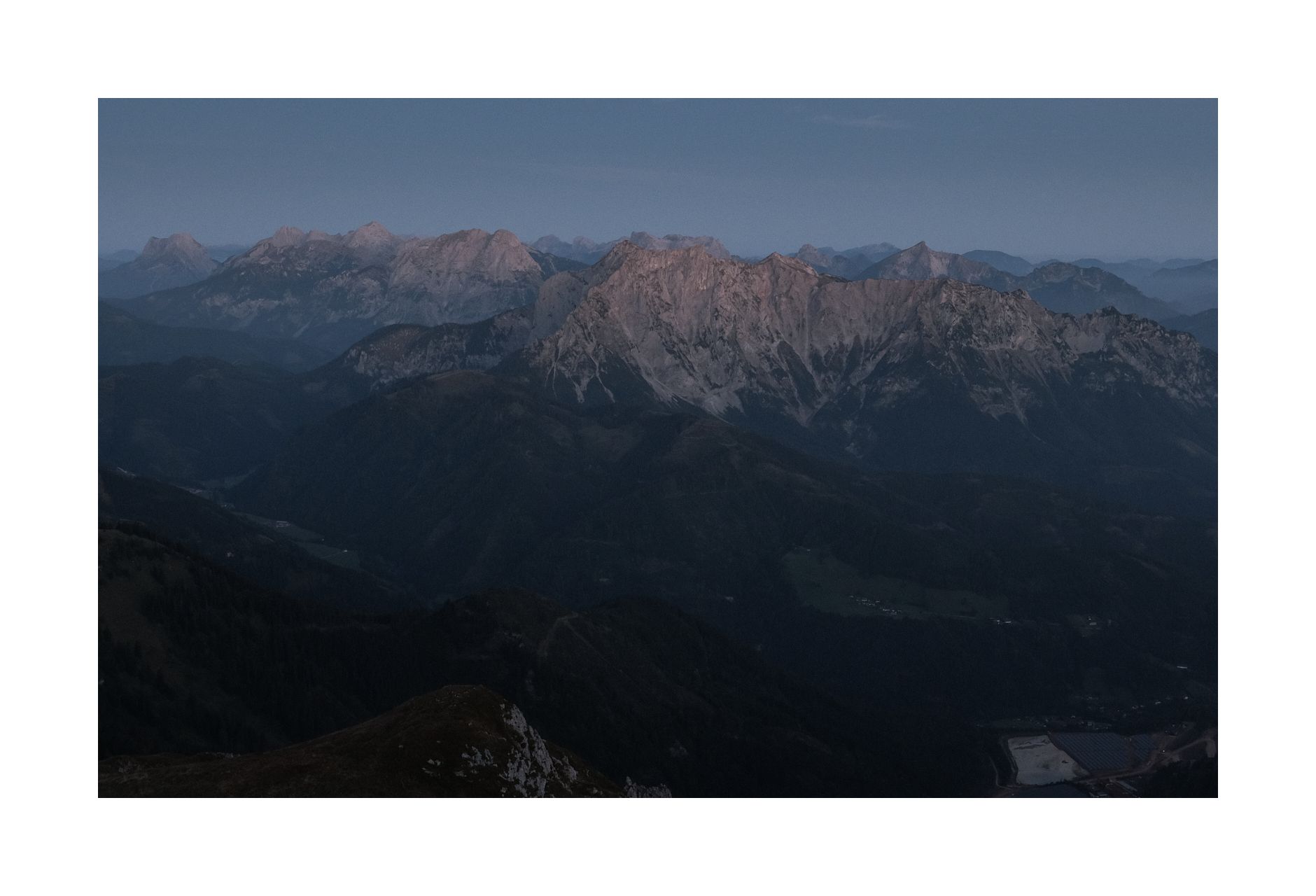 Der Sonnenaufgang schenkt mir immerhin einen weiteren Beitrag zu Projekt 12. Die Sonnenstrahlen ergießen sich in die Nebel über dem Randgebirge östlich der Mur. Das gehört für mich unbedingt ins Teilprojekt night&sky (mehr sky als night, aber was soll's).