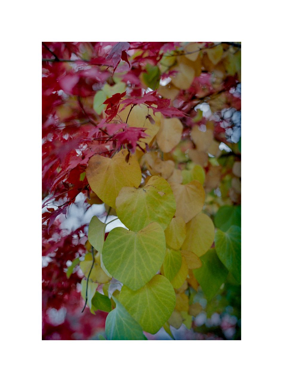 Bunte Blätter bei bewölktem Himmel bringen es einfach nicht. Die Farben des PORTRA 160 poppen nur im Sonnenlicht so richtig auf. Diffuses Licht aus einem bewölkten Himmel führt hingegen zu einem matten Gesamteindruck. Auch intensive Nachbearbei-tungsversuche konnten die roten Blätter am Baum vor dem Blumengeschäft nicht mehr retten. Jetzt, zwei Wochen später ist das Motiv bereits vorbei und die ehemals roten Blätter liegen braun und vertrocknet am Boden.