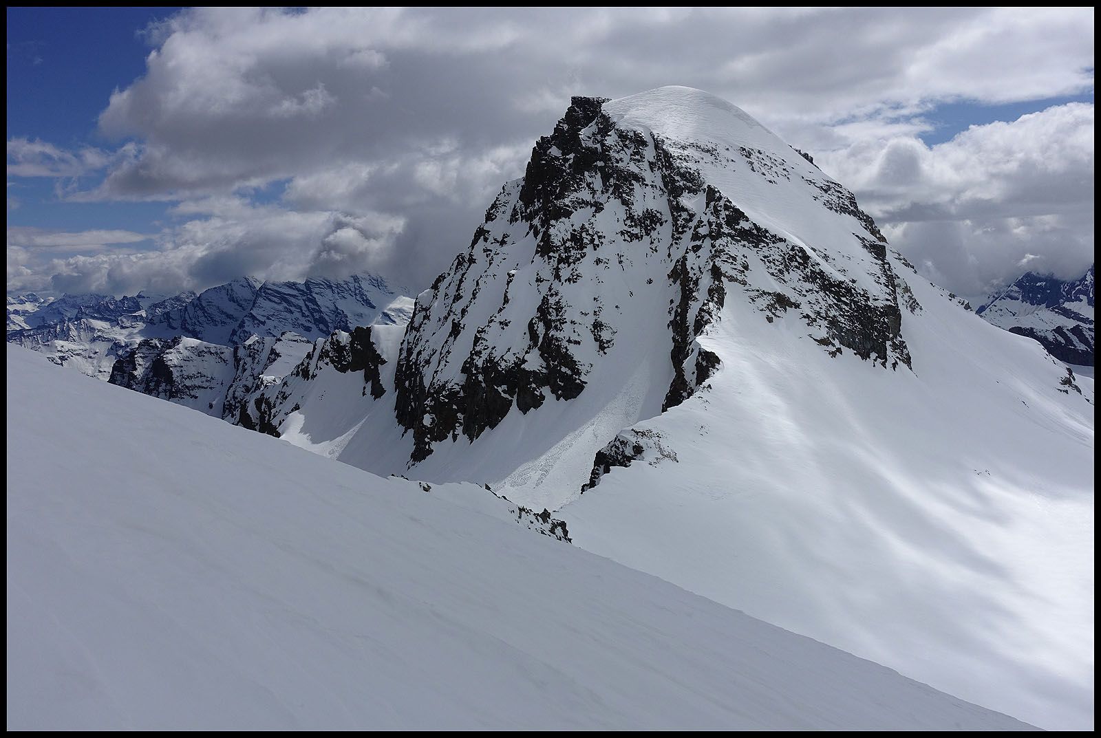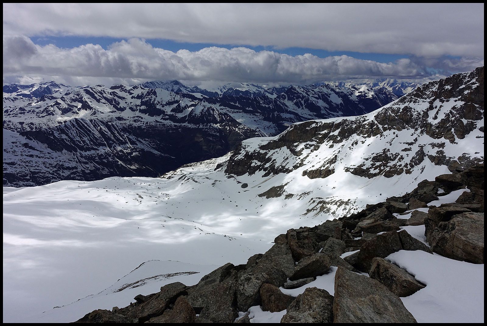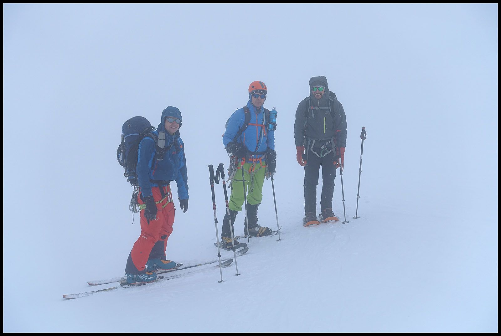 Feuchter Schnee kann grausam sein! Warum wird man eigentlich von den wenigen Sonnenstrahlen, bei ansonsten durchschnittlichem Wetter, immer genau getroffen? Egal, wir erreichen durchschwitzt aber glücklich unseren Halbtagesdreitausender, La Tresenta (für die weniger sprachbegabten Teilnehmer der Kleingruppe wird das schnell zu Tiramisu).
