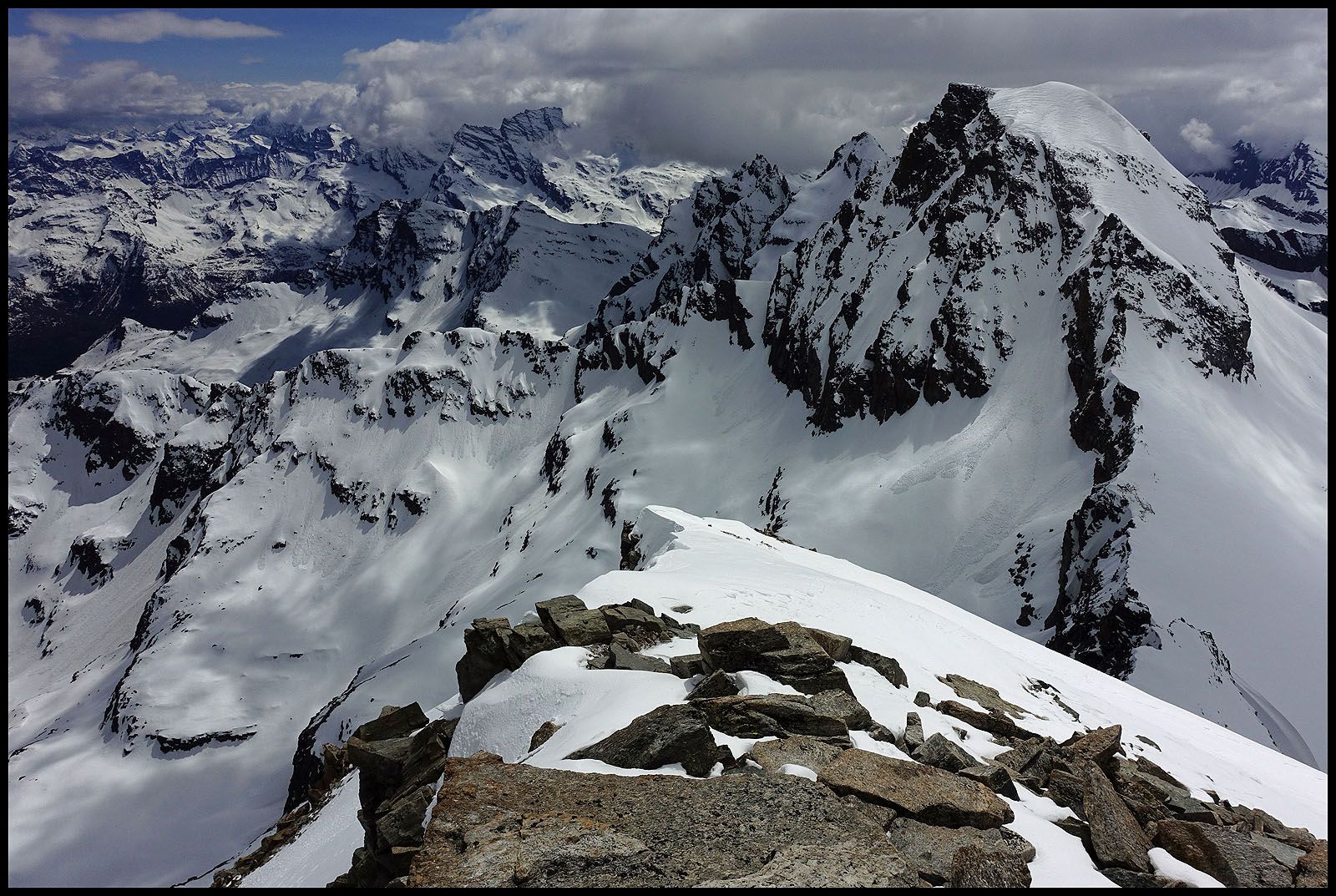 Das umliegende Wetter gibt zunächst Anlass zur Hoffnung. Nur der Gran Paradiso will sich nicht zeigen. „Das wird sicher noch besser!“ „Ja, ja.“