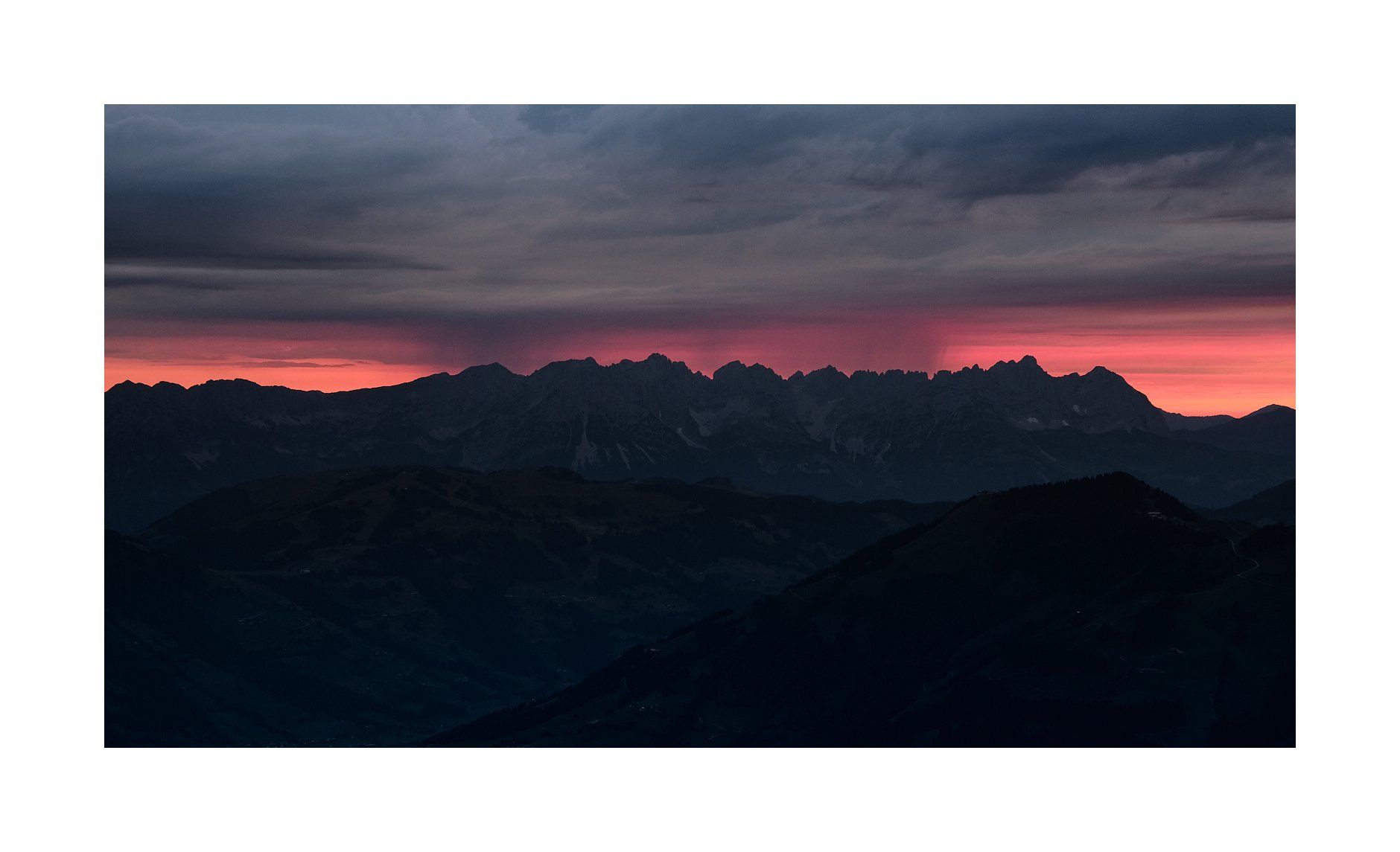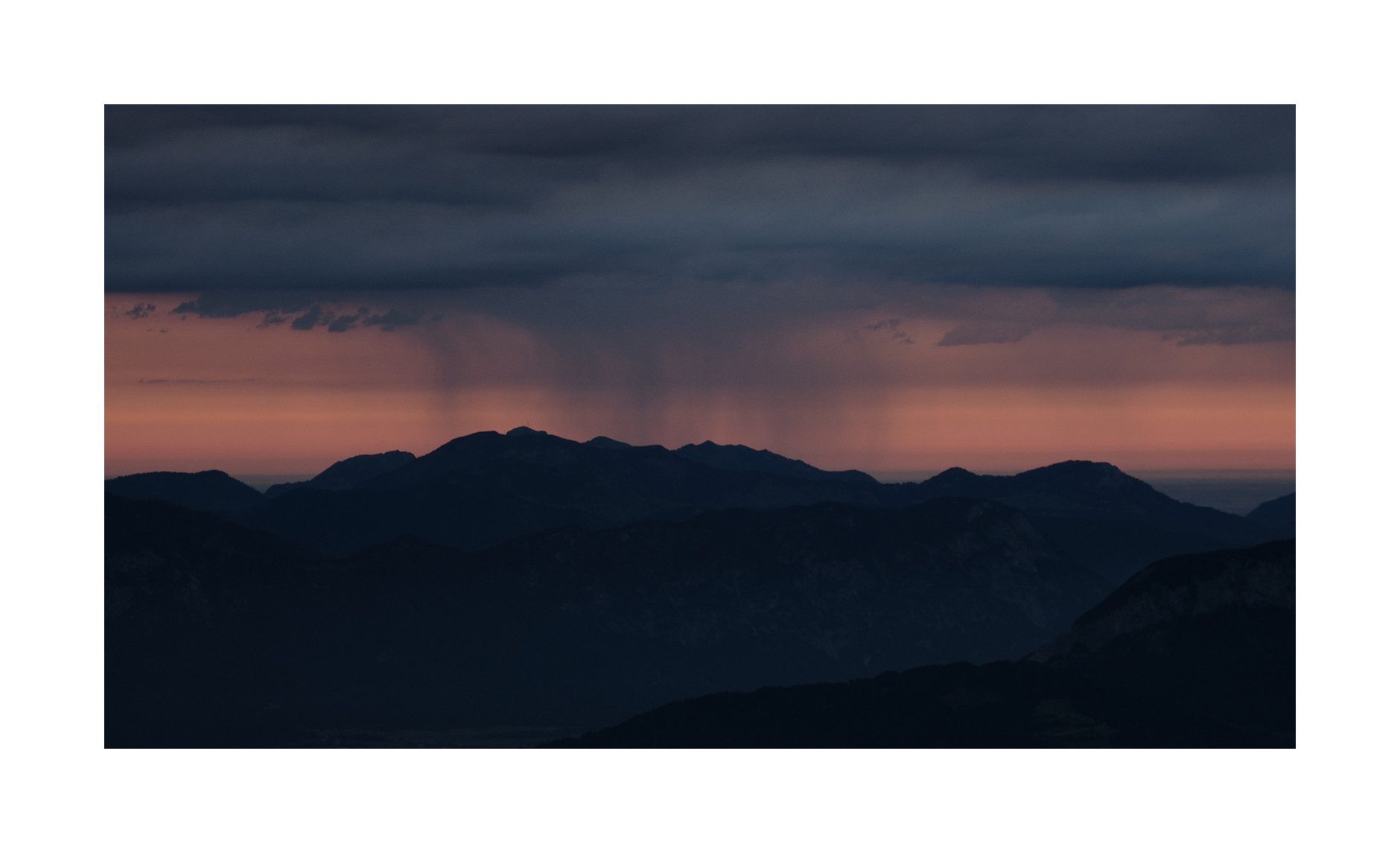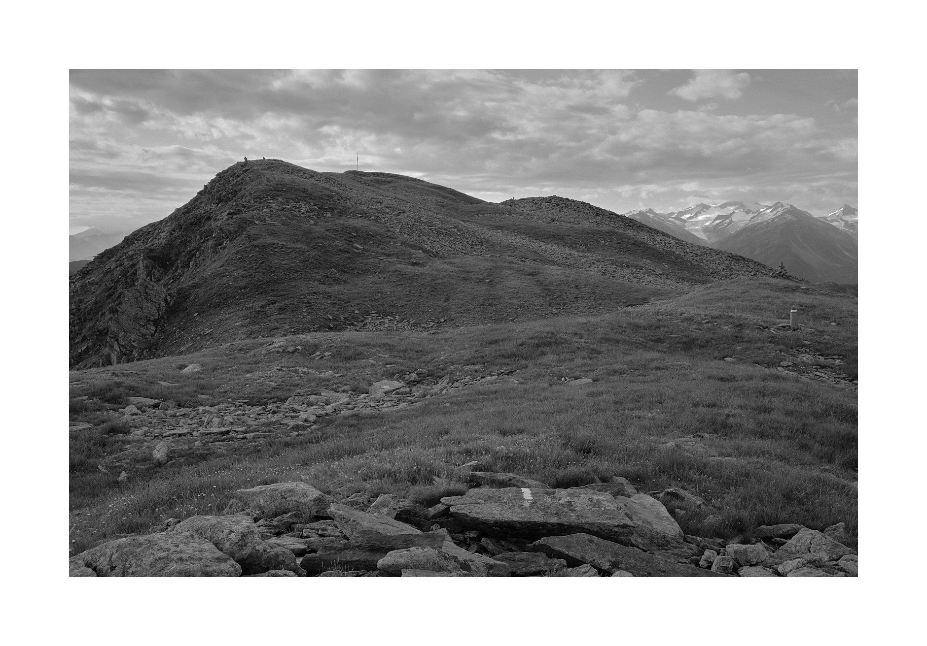 Als wir den Gipfel erreichen ist es nicht mehr lang hin, bis zu einem farbenprächtigen Sonnenuntergang. Ich breche deshalb mit meinem selbstgewählten Schwarzweißfotografie-Gelübde und stelle die Regler auf Farbe. Später, so schwöre ich beim heiligen Kodak, werde ich dafür zehn ‚Ilford unser‘ beten und mich mit dem Kameratrageriemen einen Tag lang auf dem nackten Rücken geißeln…