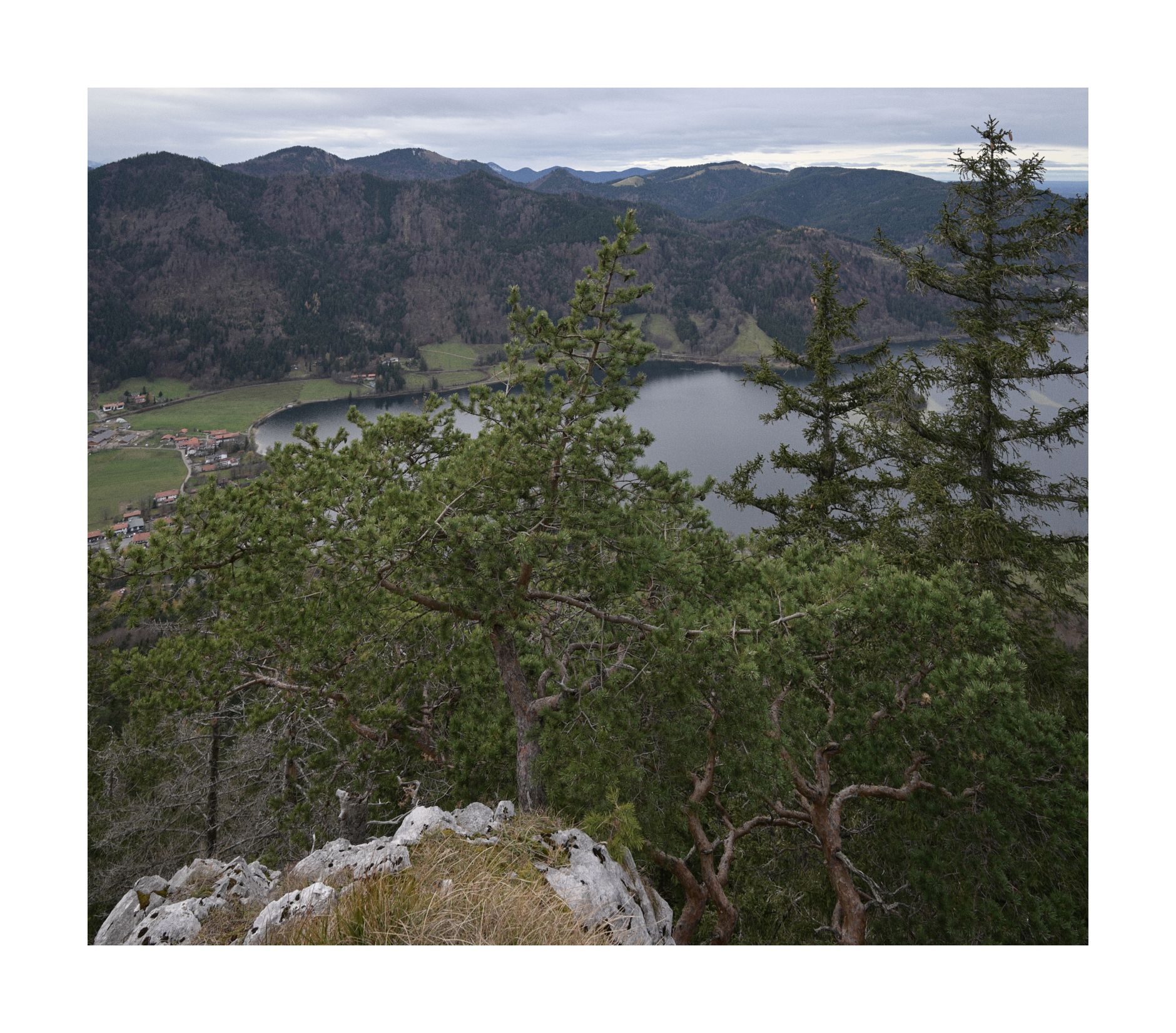 Der Abstecher hat sich gelohnt. Der lange Rückweg und Aufstieg zum Hirschgröhrkopf dagegen weniger. Aussicht gibts hier keine. Den südseitigen Abstieg aus meiner Screenshotkarte finde ich auch nicht. Jetzt wäre es sicher leicht gewesen, einfach umzukehren und auf breiten Forstwegen gen Schliersee zu spazieren. Ich wäre aber kein richtiger Zing, wenn ich nicht mit dem Kopf durch die Wand bzw. durchs Unterholz brechen könnte. Da unten muss ein Weg verlaufen!