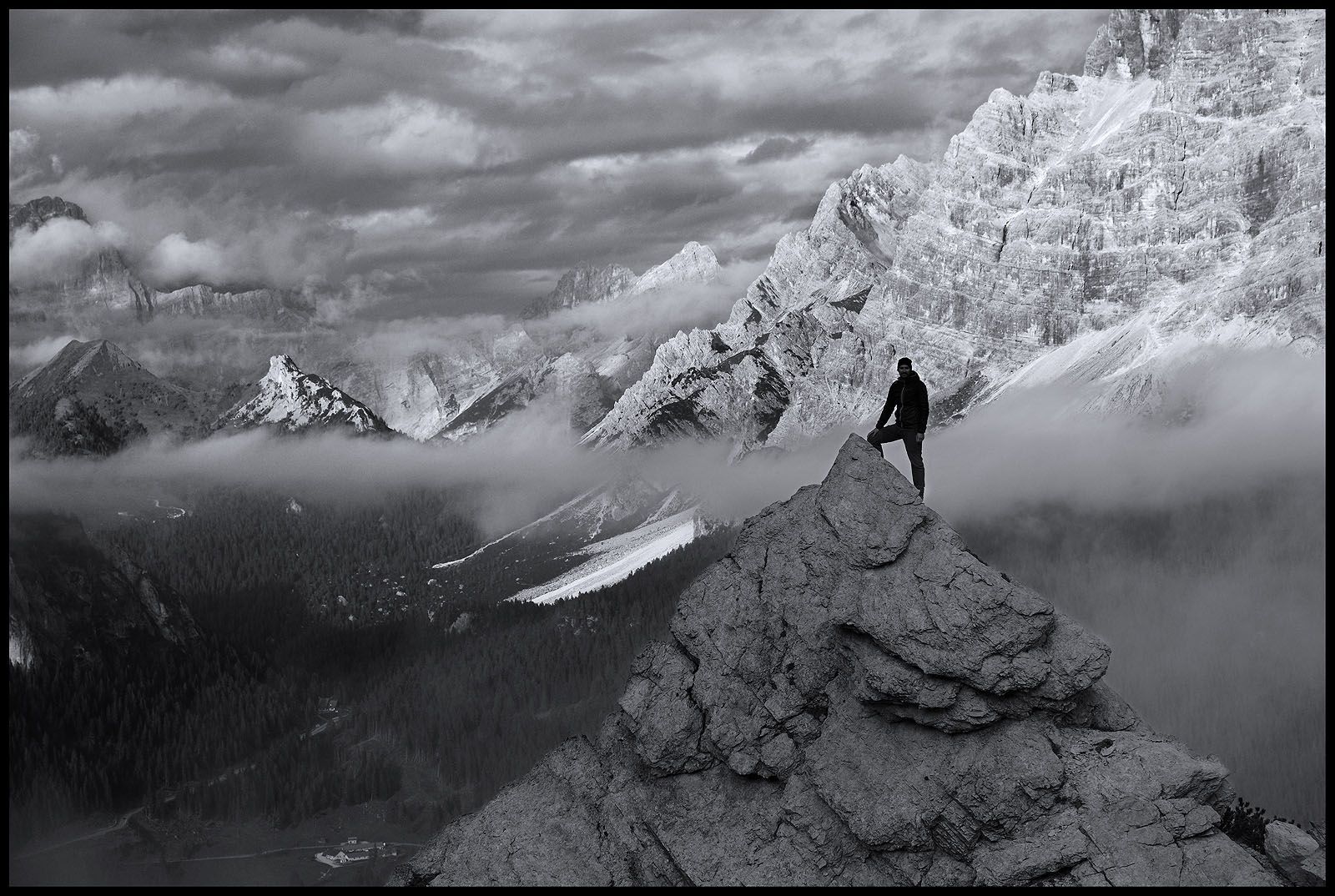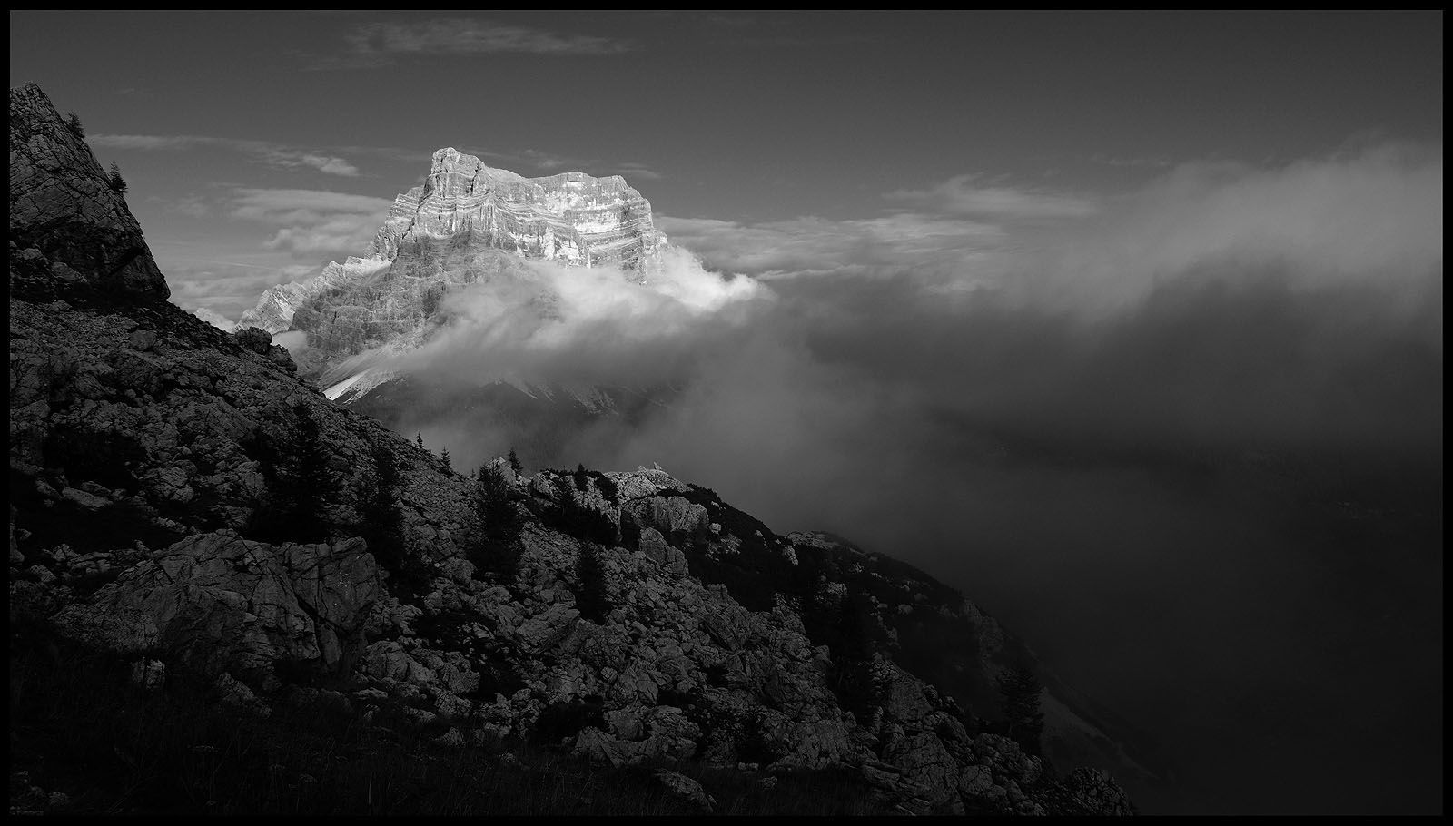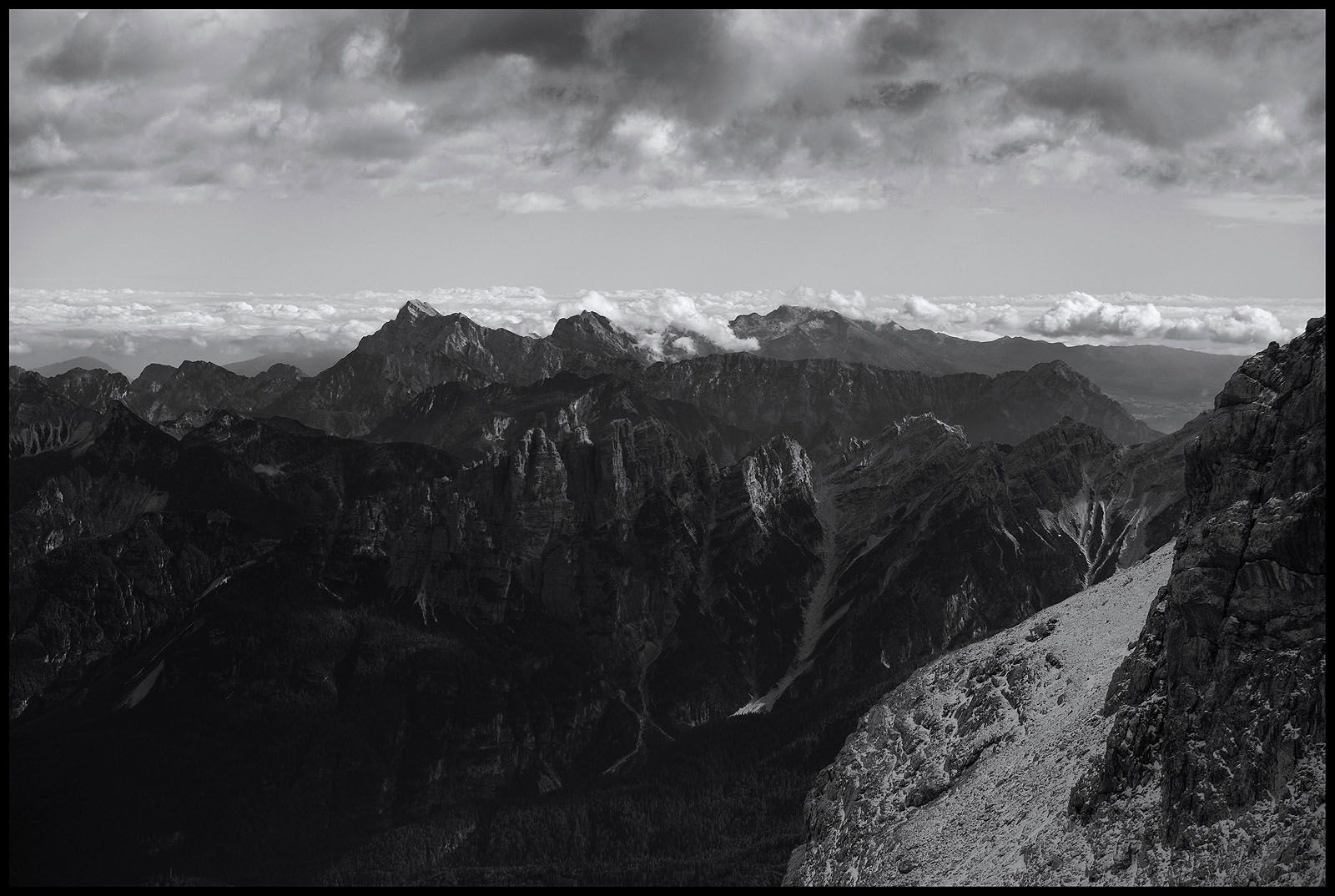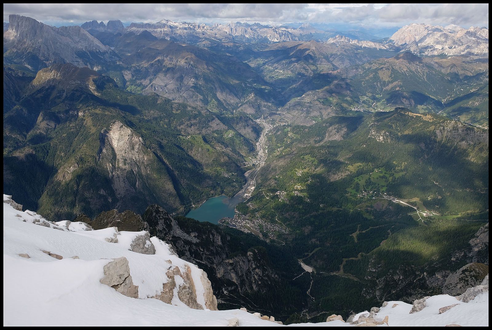 Ich sitze hier und schaue fort vom Einstieg der Ferrata Alleghesi. Ich brauche jetzt Ruhe, um mich auf den bevorstehenden, fast 900m hohen Klettersteig einzustimmen. Ich halte mir die Ohren zu. Selbst die Späße der Kameraden sind mir jetzt zu viel.
