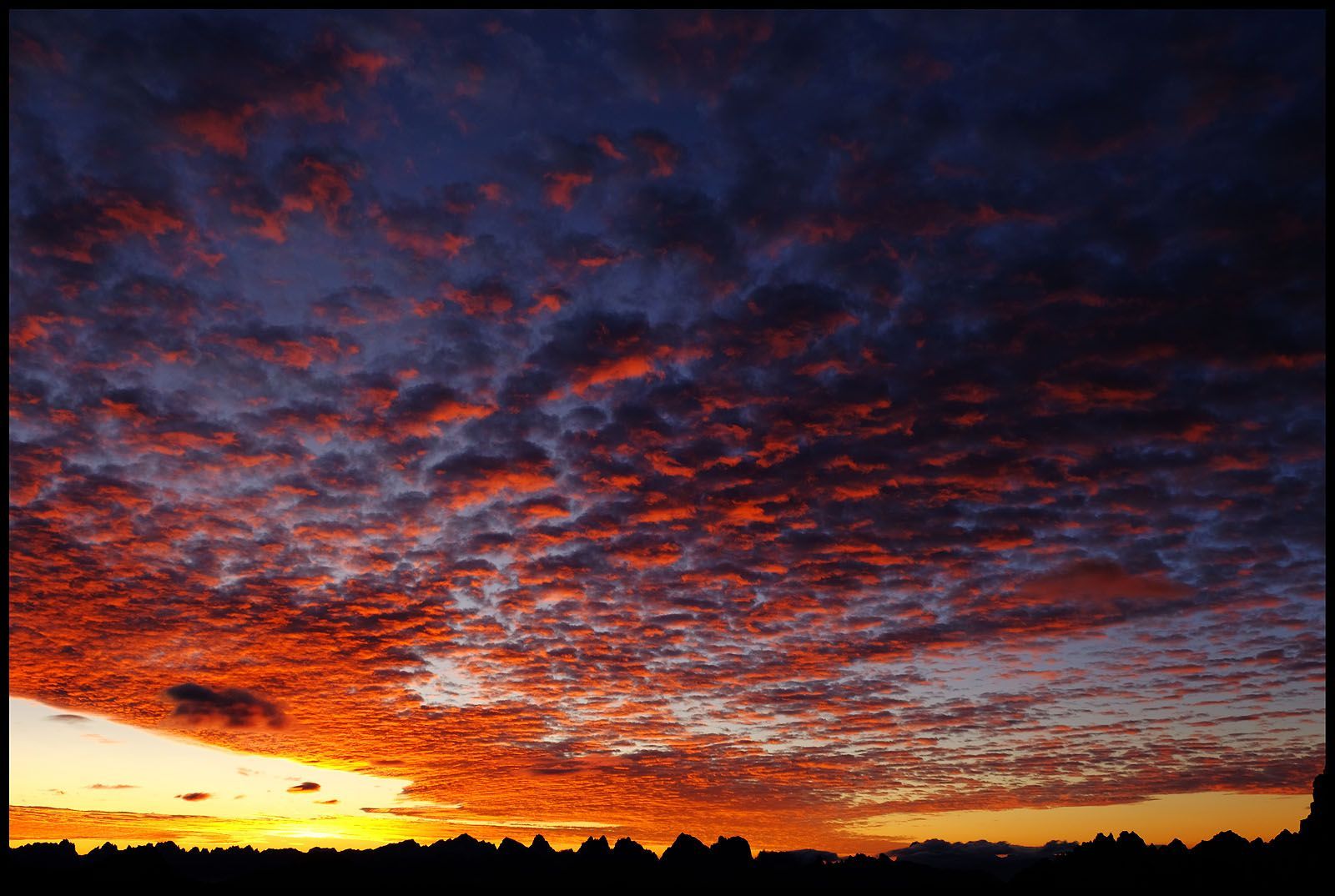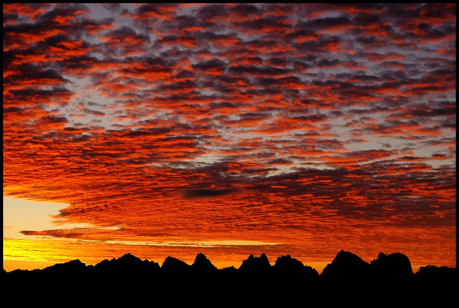 Der letzte Morgen überrascht mit einem eindrucksvollen Farbenspiel am Himmel: Morgenrot - Schlechtwetter droht! Egal, der Urlaub ist ja leider auch schon zu Ende.