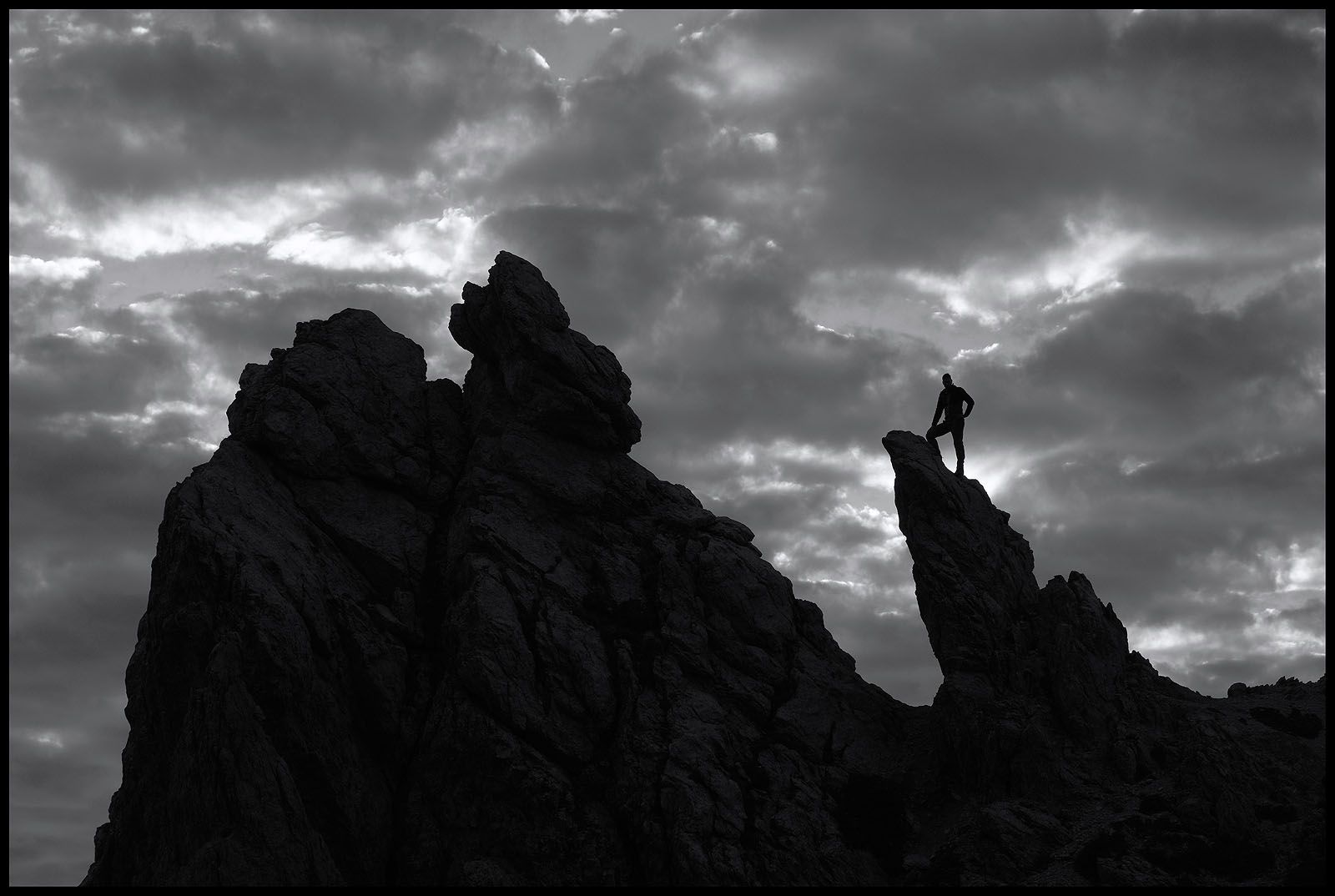 Nach dem schier unendlich erscheinenden Wechselspiel aus Steilstufen, Bändern, mal Drahtseil und mal nicht Drahtseil erreichen wir dann endlich den Gipfel. Der blaue Himmel ist tief hängender Bewölkung gewichen. Es ist kalt. Lange halten wir uns nicht auf. Frank mahnt zum Abstieg, der aufgrund von Schnee und Eis noch einmal sehr heikel werden könnte. Recht hat er.