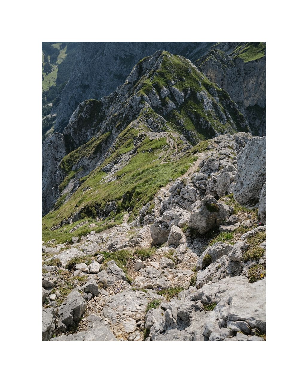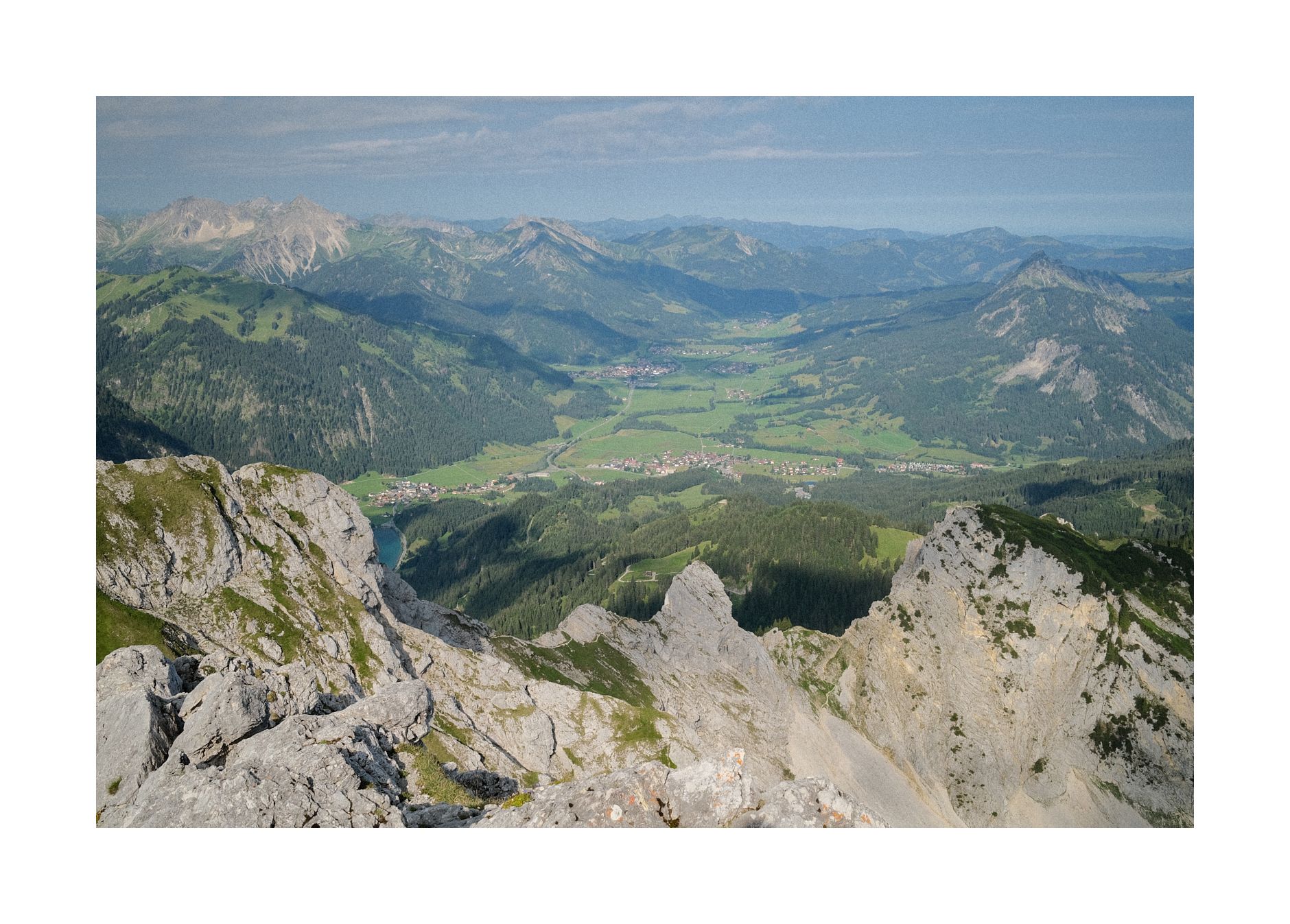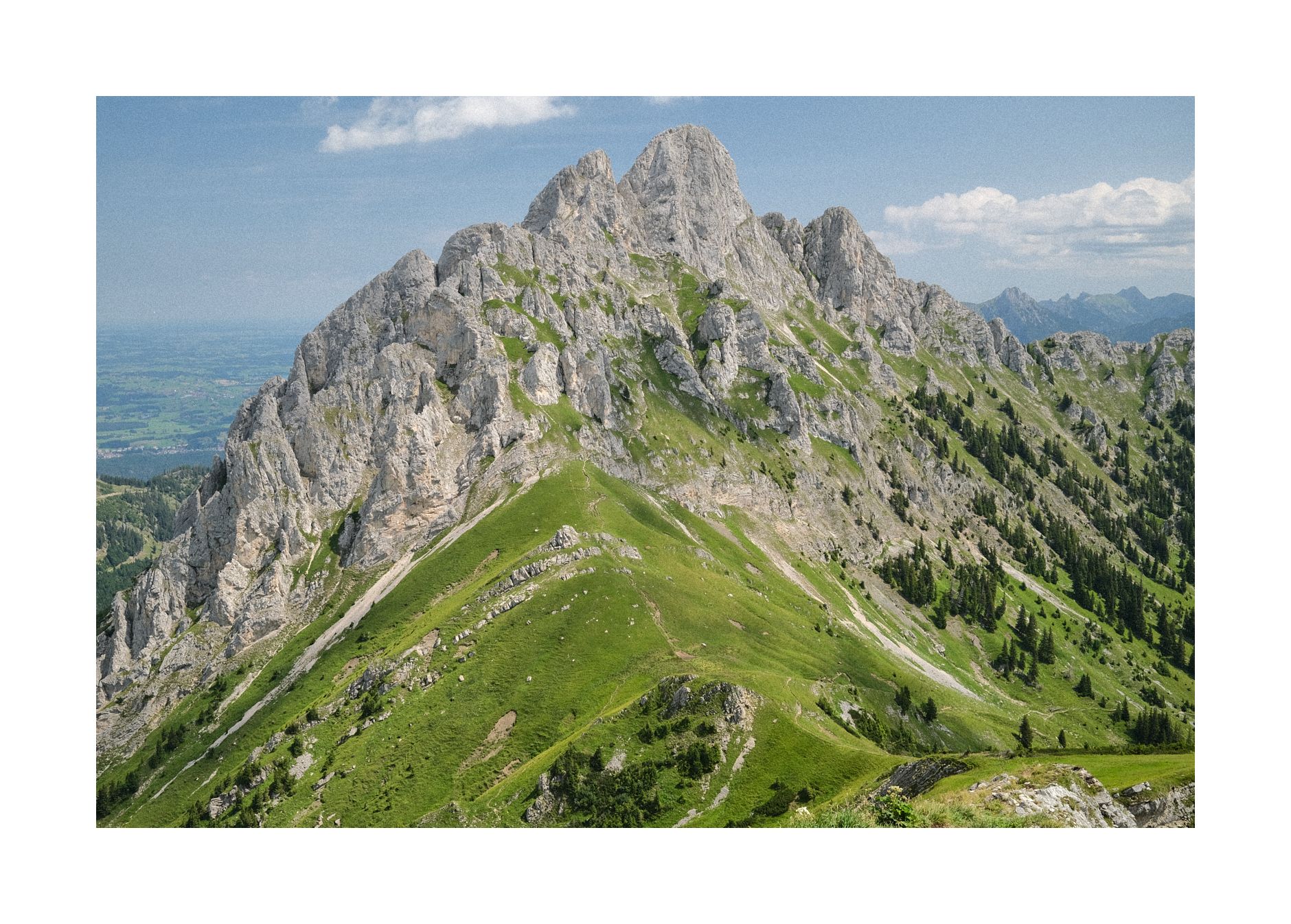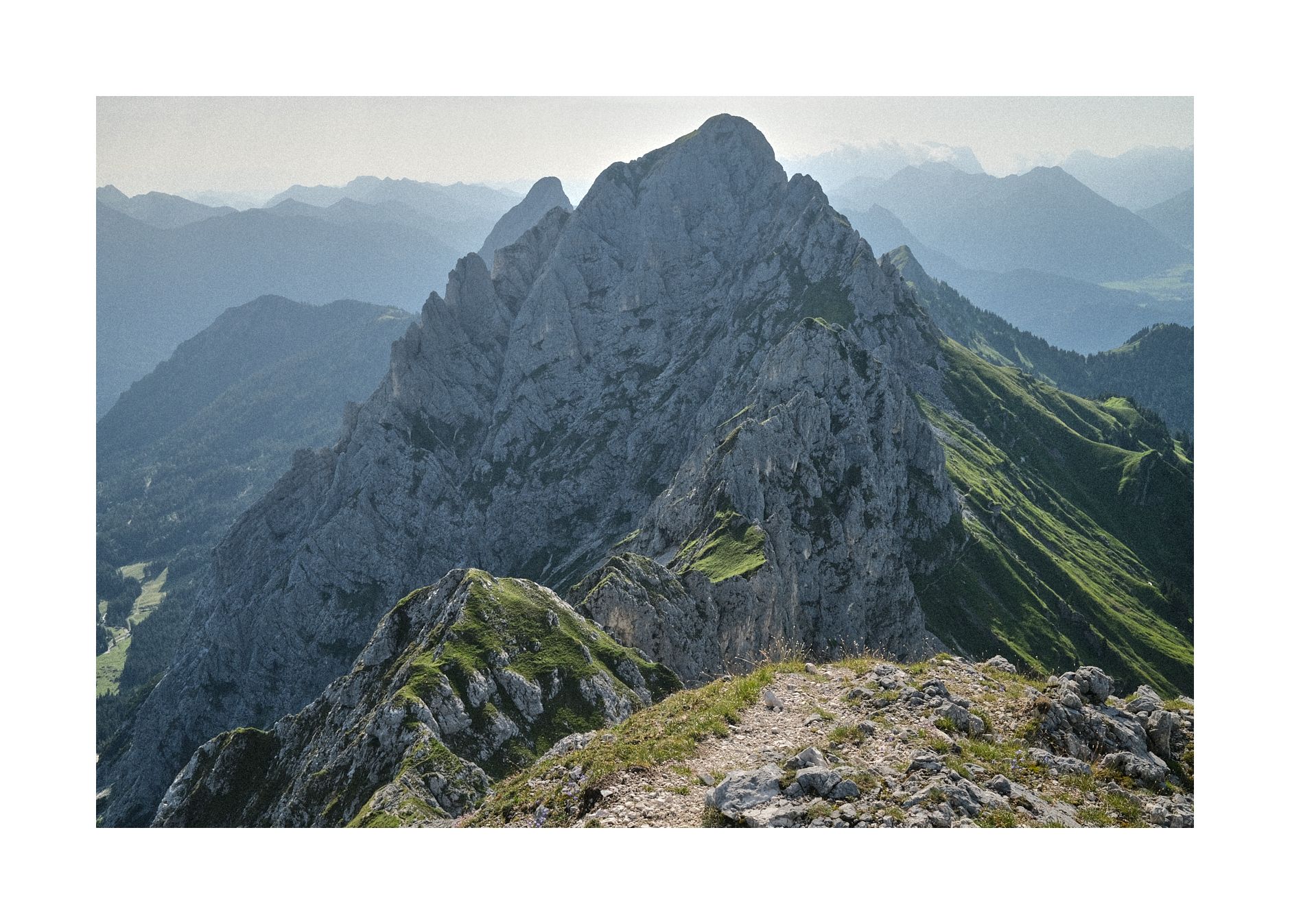 Es ist windig hier oben auf dem Gimpel. Obwohl ich den Gipfel ganz für mich alleine habe, will keine rechte Pausenlaune eintreten. Noch wechseln sich Sonne und Wolken stetig ab. Eine voll ausgeleuchtete Szene zu fotografieren ist ein sehr anspruchsvolles Unterfangen. Könnte aber sein, dass mir doch ein paar schöne Bilder gelungen sind. Es ist Zeit für den Abstieg.