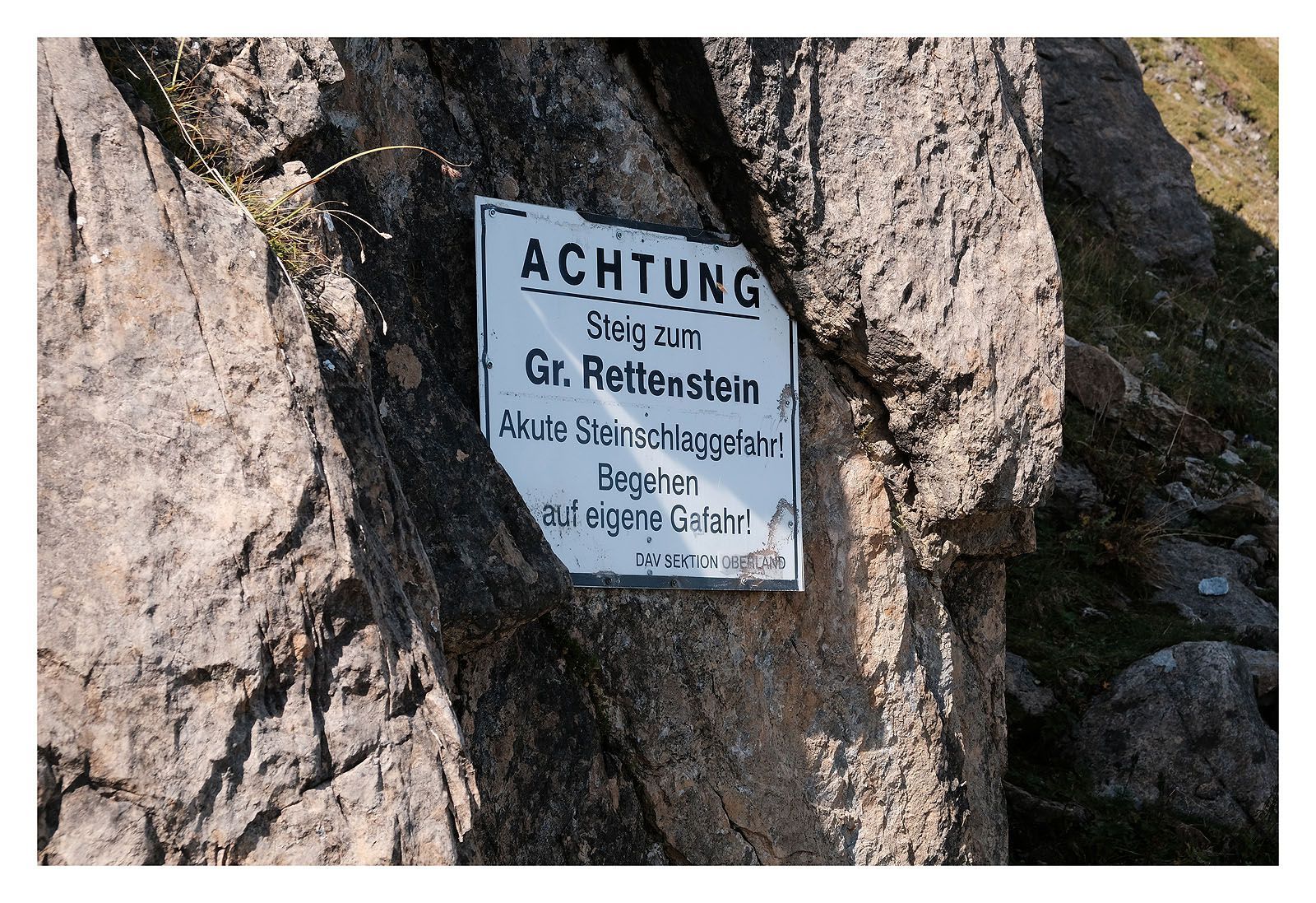 Zu meiner eigenen Schande muss ich gestehen, dass ich diese Tour nicht sehr ausführlich geplant habe. Es war mehr so eine abendliche Übersprungshandlung, passend zur deprimierenden Tagesschau. Hätte ich nämlich intensiver recherchiert, dann hätte ich einen Helm mitgenommen (und auch aufgesetzt). Der Berg ist in Bewegung...