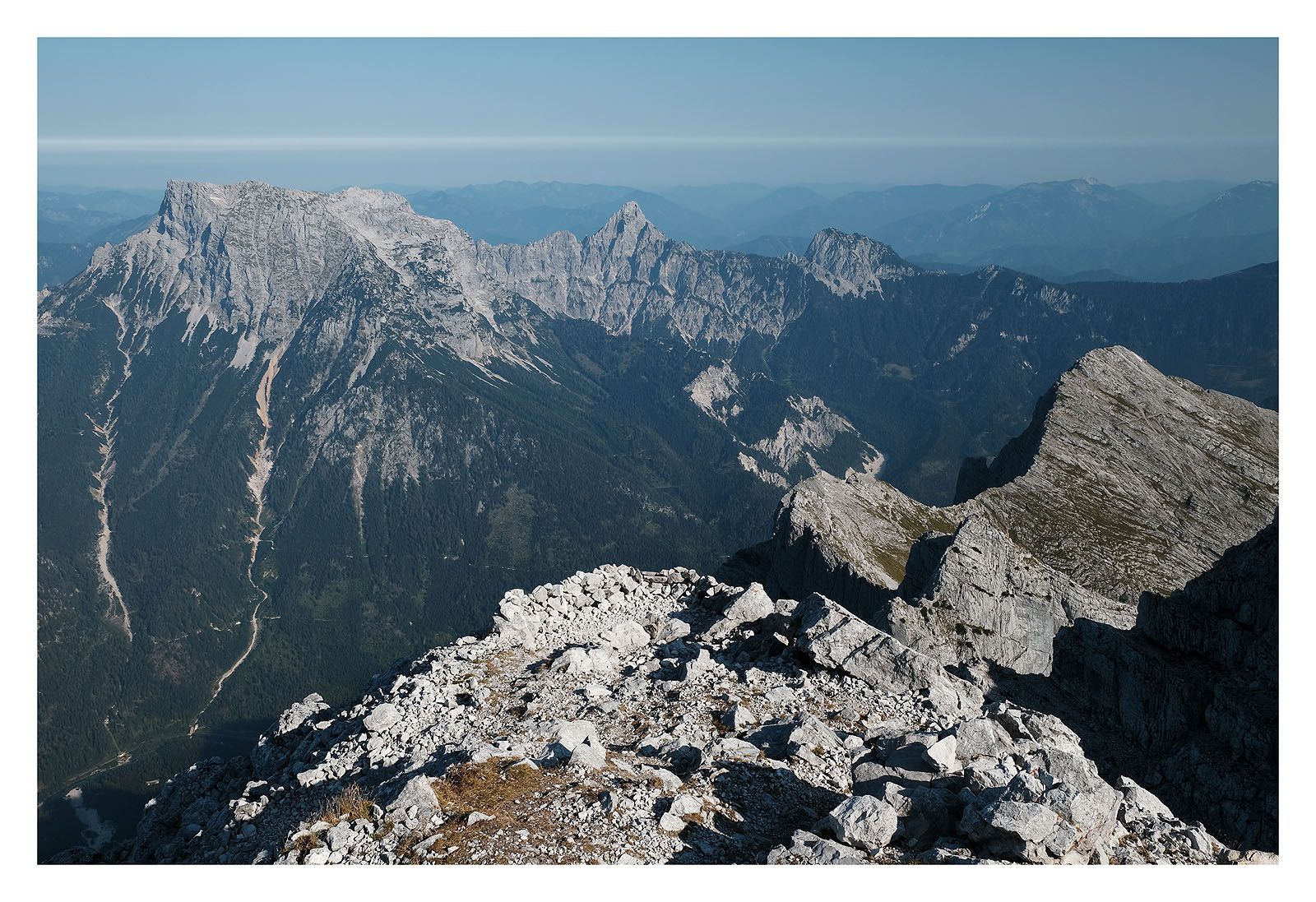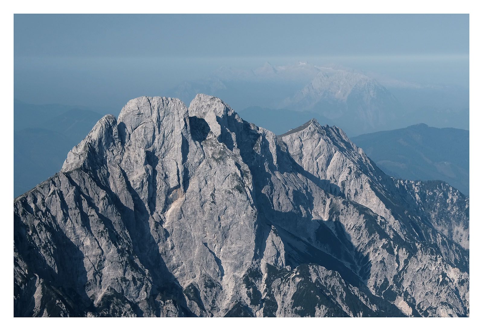 Was soll ich sagen. Mir fehlen die Worte. Vom Gipfel des Hochtors kann man in der Welt wie in einer Landkarte lesen. Der Blick reicht vom Hochschwabmassiv im Osten bis zum Dachstein im Westen. Der Globus offenbart hier die Zusammenhänge, die sich mittels Kartenstudium nicht erschließen lassen. Dennoch erkenne ich auch meinen Nachholbedarf beim Studium der AVE der Ostalpen. Zusammen mit einem Pärchen Einheimischer tausche ich Halbwissen aus. Rottenmanner Tauern, Randgebirge östlich der Mur, Eisenerzer Alpen. Das klingt alles sehr spannend. Mit einem erreichten Gipfel eröffnen sich Hundert neue Gipfel…