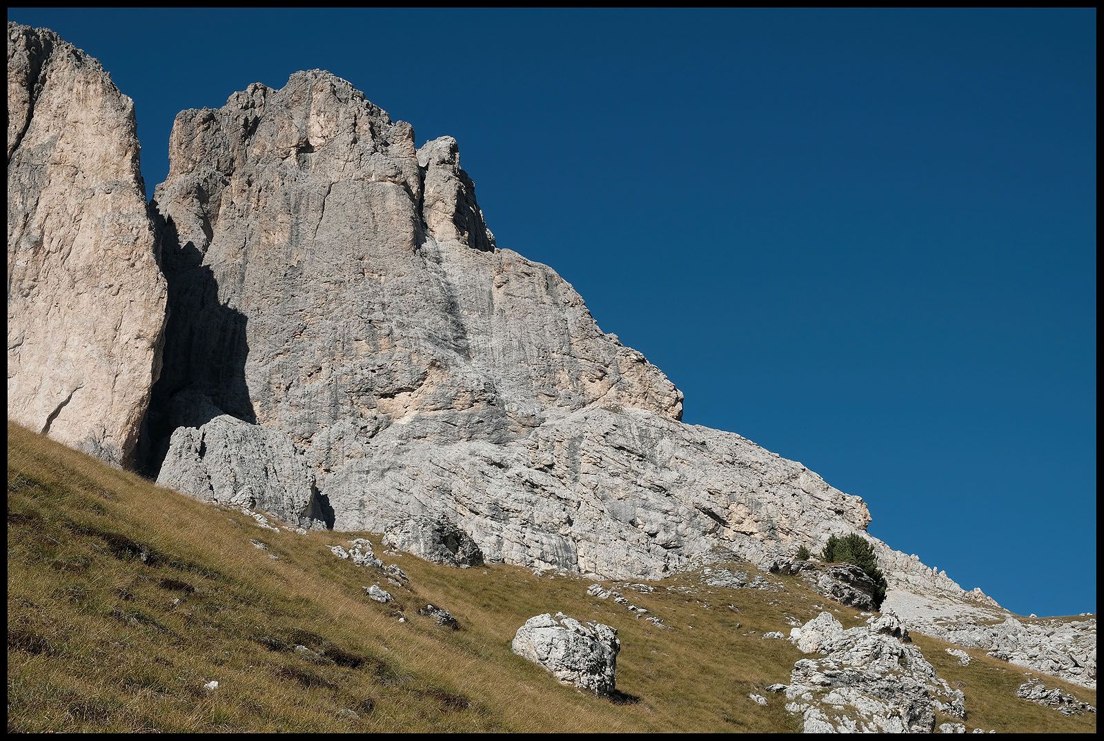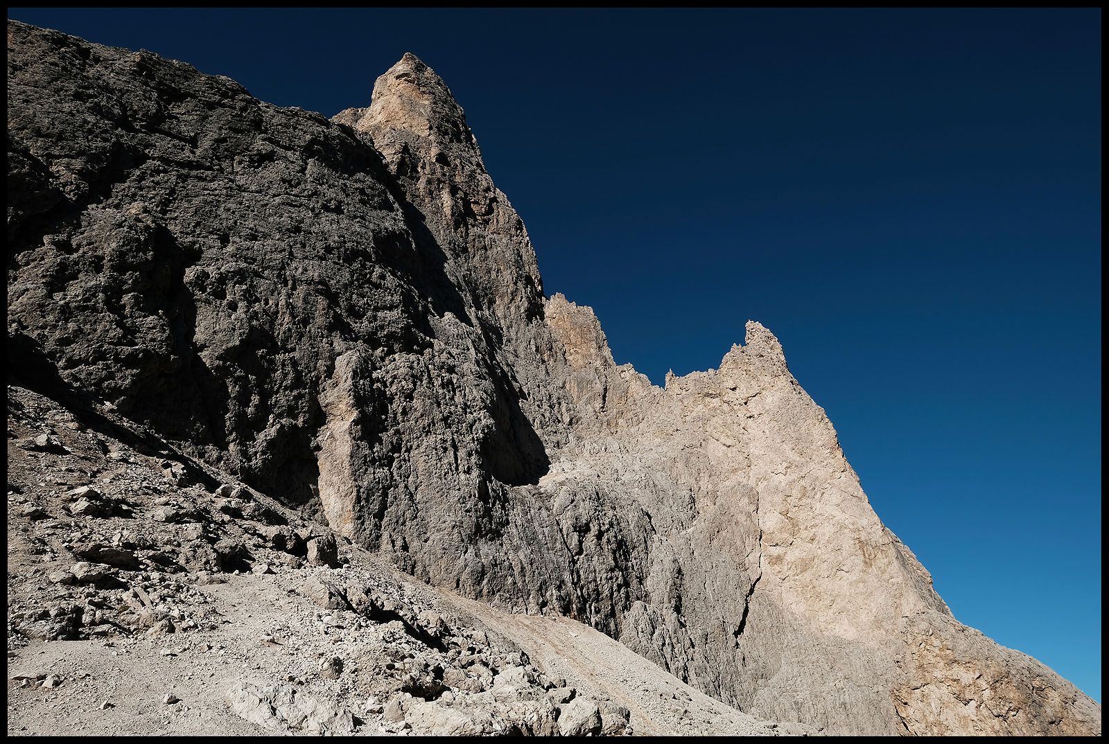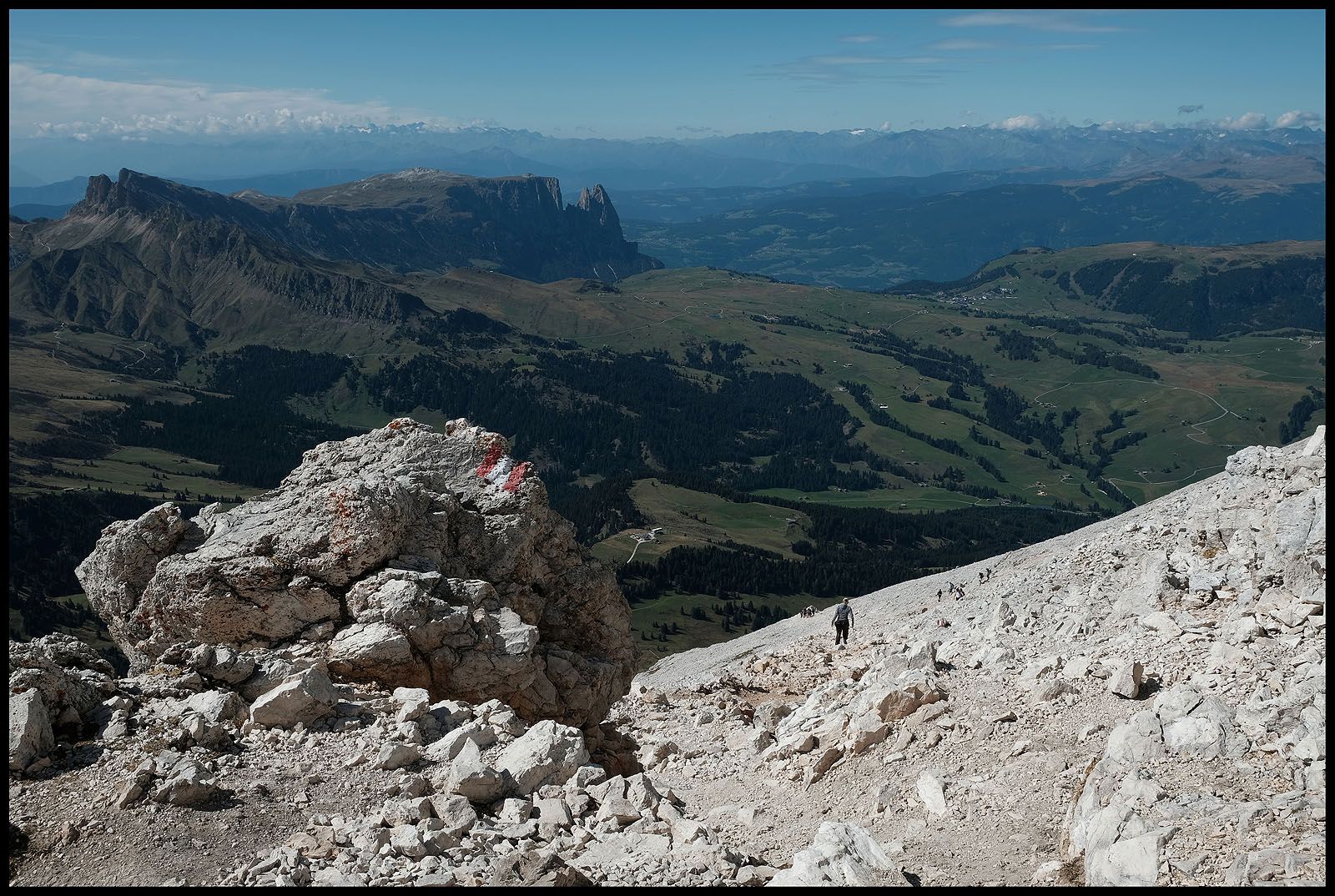 Der Hatscher über den Friedrich-August-Weg geht auch vorüber und wird durch die spannenden Einblicke in das Reich der Langkofelgruppe sogar sehr angenehm. Hier gibt es noch vieles zu entdecken.