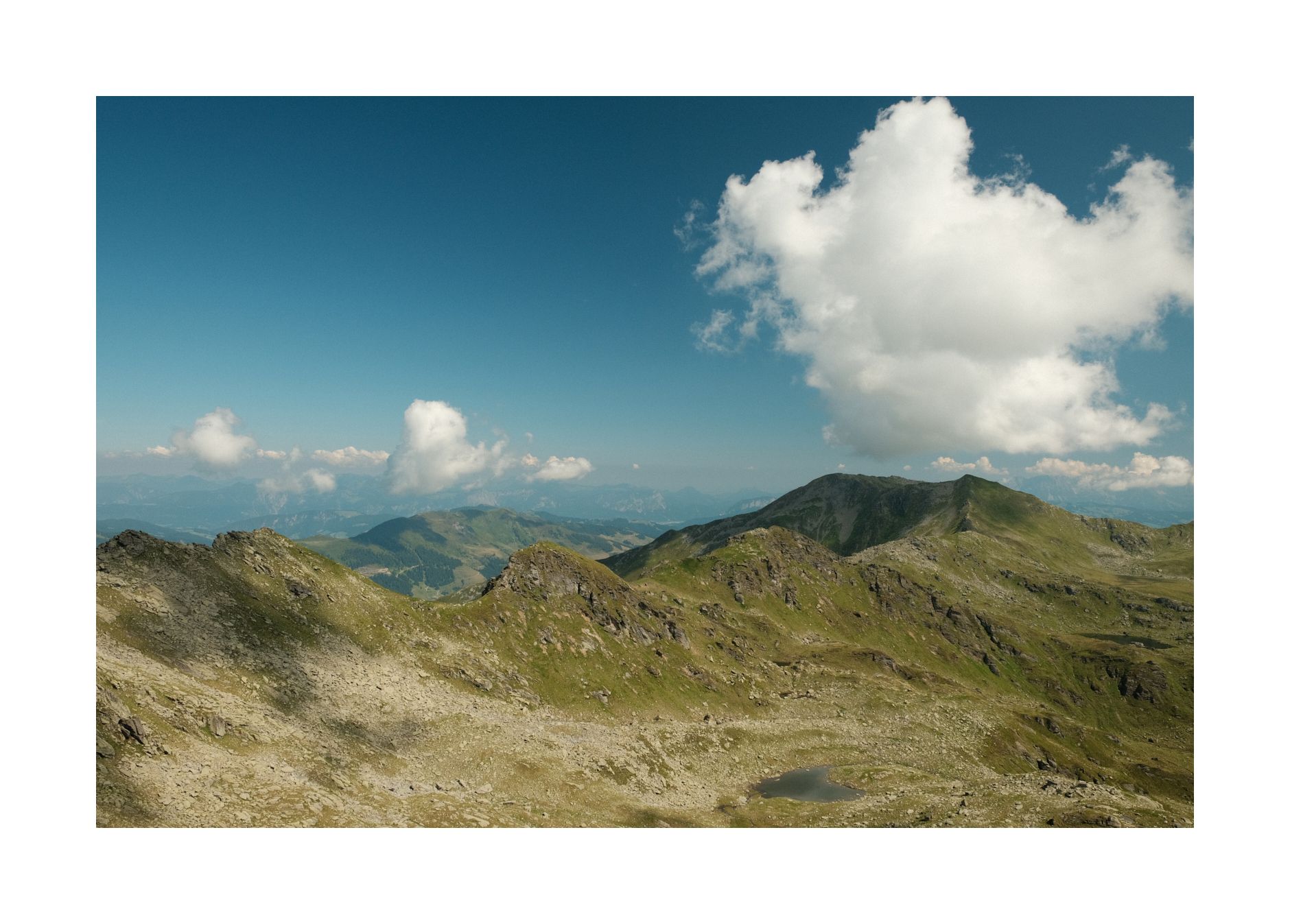 Die Quelle der Salzach ist ein kleiner See auf ca. 2.300m. Es gibt hier sogar so etwas wie einen Badestrand. Ich traue mich jedoch nur bis zu den Knien hinein. Einerseits ist das Wasser lediglich 5 Milimeter kalt und anderseits möchte ich die Menschen am Unterlauf der Salzach nicht verseuchen.