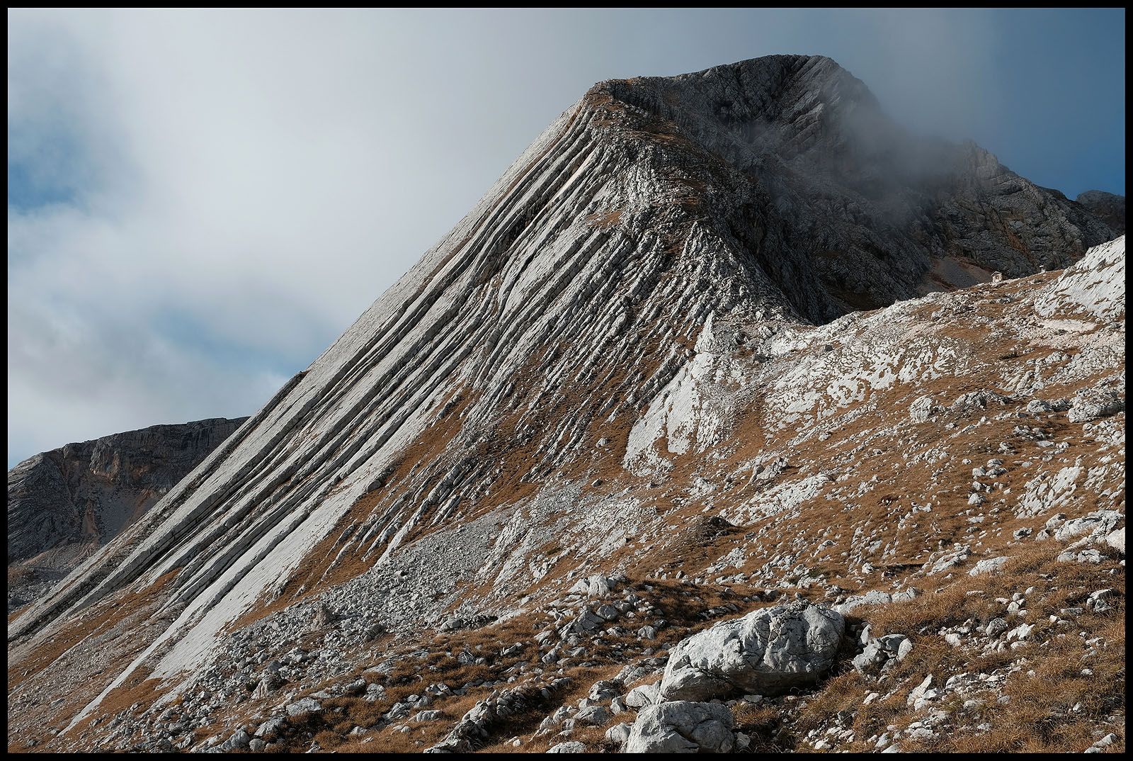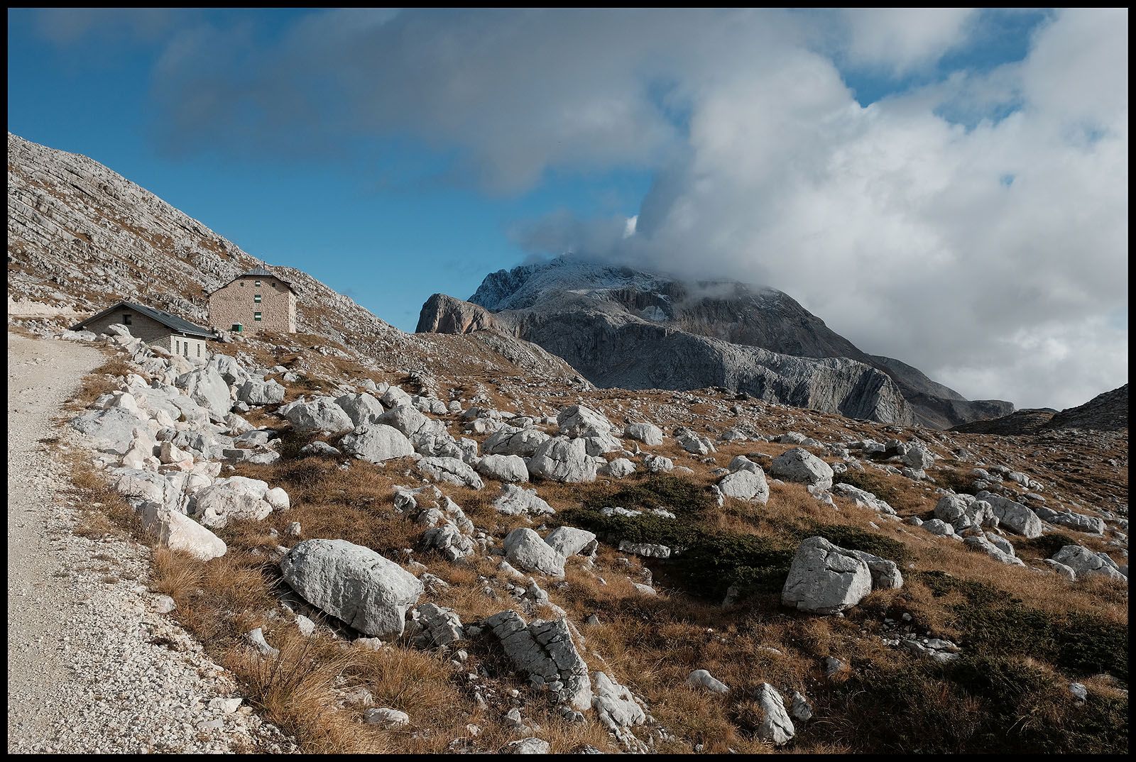 Glücklich und zufrieden poltere ich den Berg hinab. Die Seekofelhütte und den Winterraum möchte ich noch ansehen. Und dann gibt es da noch die Mission, vorzeigbare Ansichten der Seekofelsüdwand zu beschaffen.