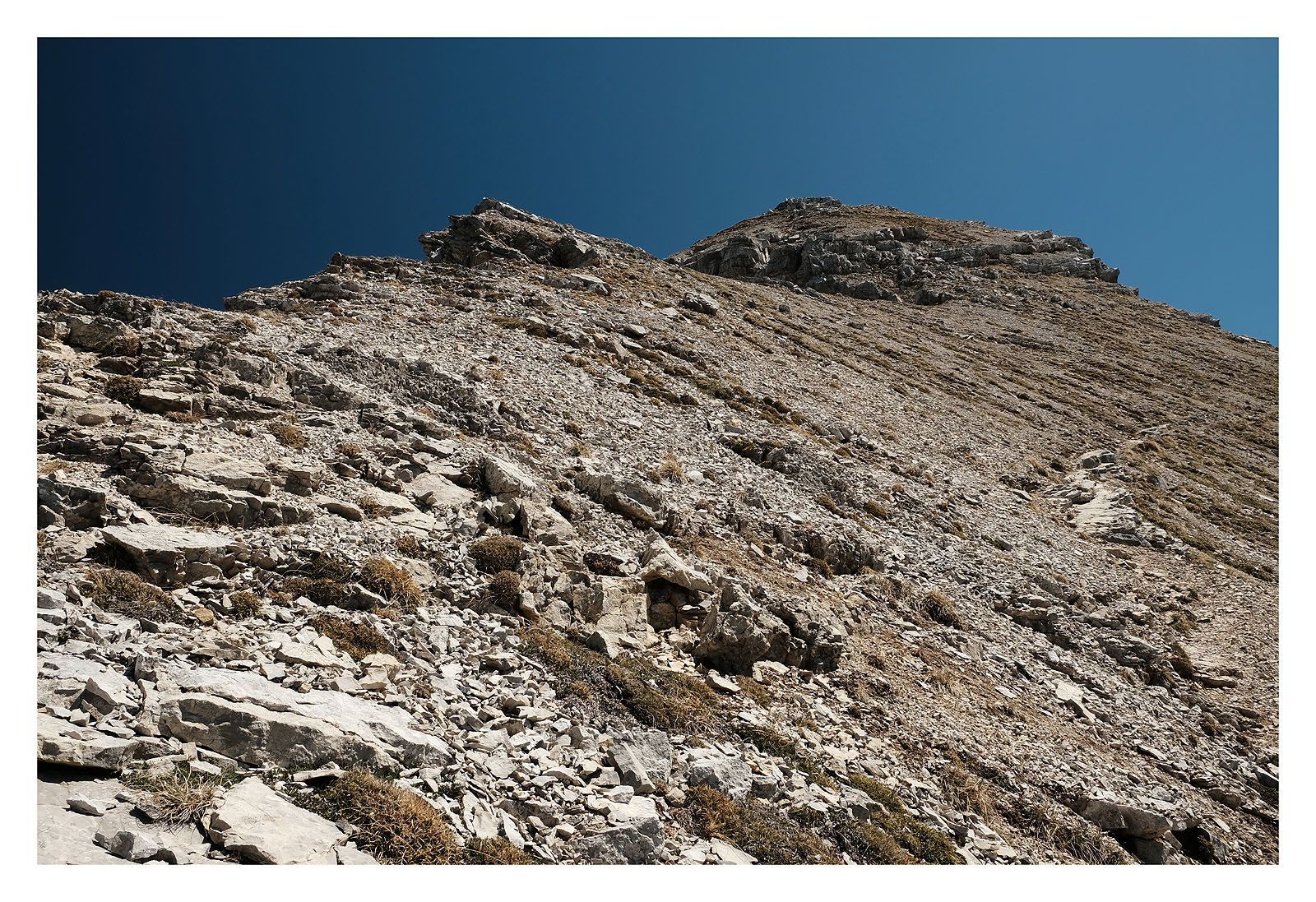 Der weitere Weg ist breit, ja fast schon bequem, und hält sich meist etwas südlich unterhalb der Kammlinie. Hin und wieder gibt es Spuren, die direkt der höchstmöglichen Linie folgen. Wenn es zu schwierig wird, dann führt die Spur immer wieder zurück auf den breiten Weg.