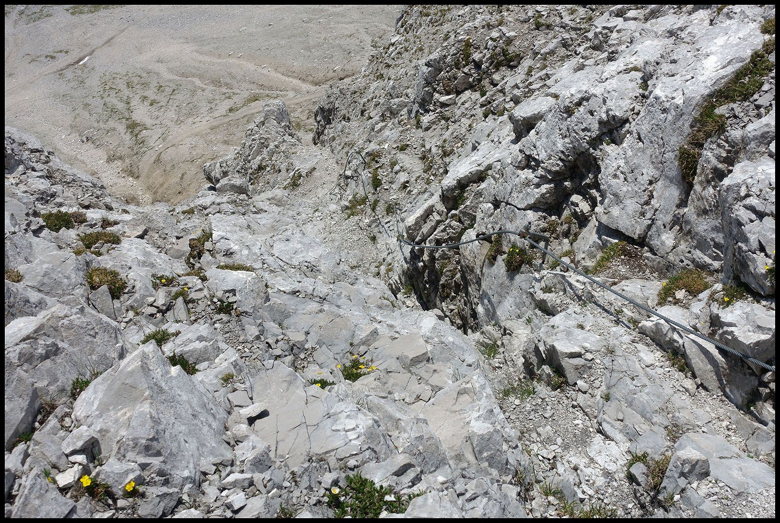 Weiter gehts auf dem Goetheweg bzw. Hermann-Buhl-Weg – beide sind im Nachhinein betrachtet ihrer Zeit schon immer voraus gewesen – zur Mandlscharte. Warum fragen mich die beiden ausgesprochen sympathischen, jungen Damen eigentlich nicht, ob ich sie vielleicht an der fotogenen Wegbiegung fotografieren möchte?
