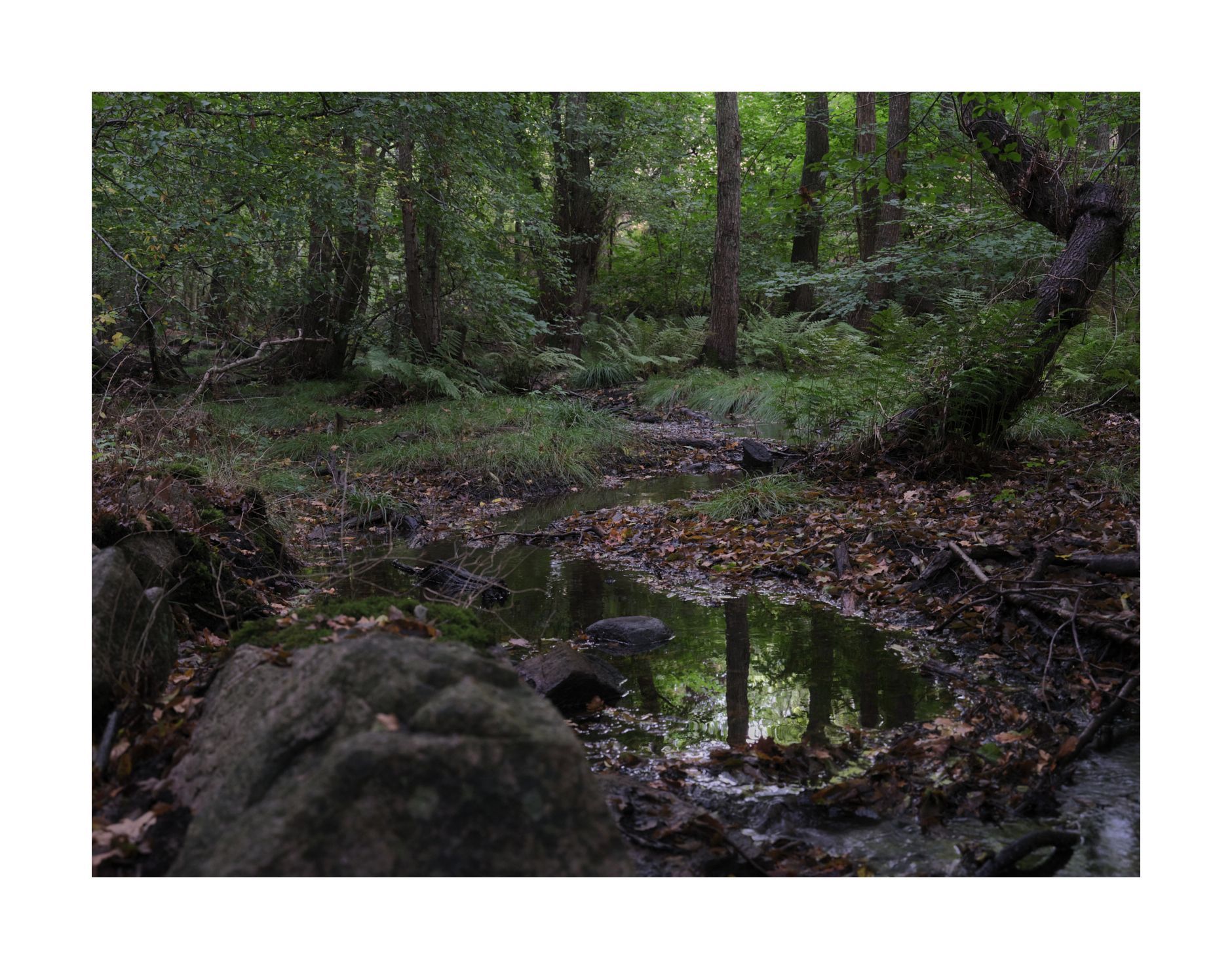 Dann endet die Zivilisation auch schon wieder. Irgendwo hat die letzte Eiszeit einen namenlosen See hinterlassen. Der Wald erscheint wieder unberührt. Die Wege verschwinden unter Laub. Doch gelange ich zu einem Trafohäuschen.