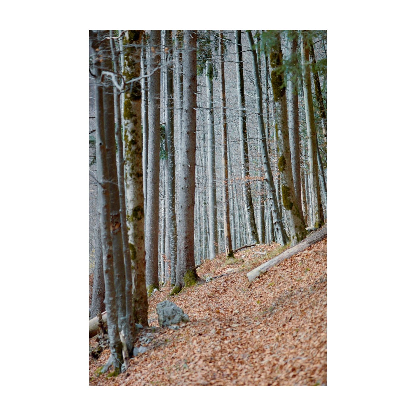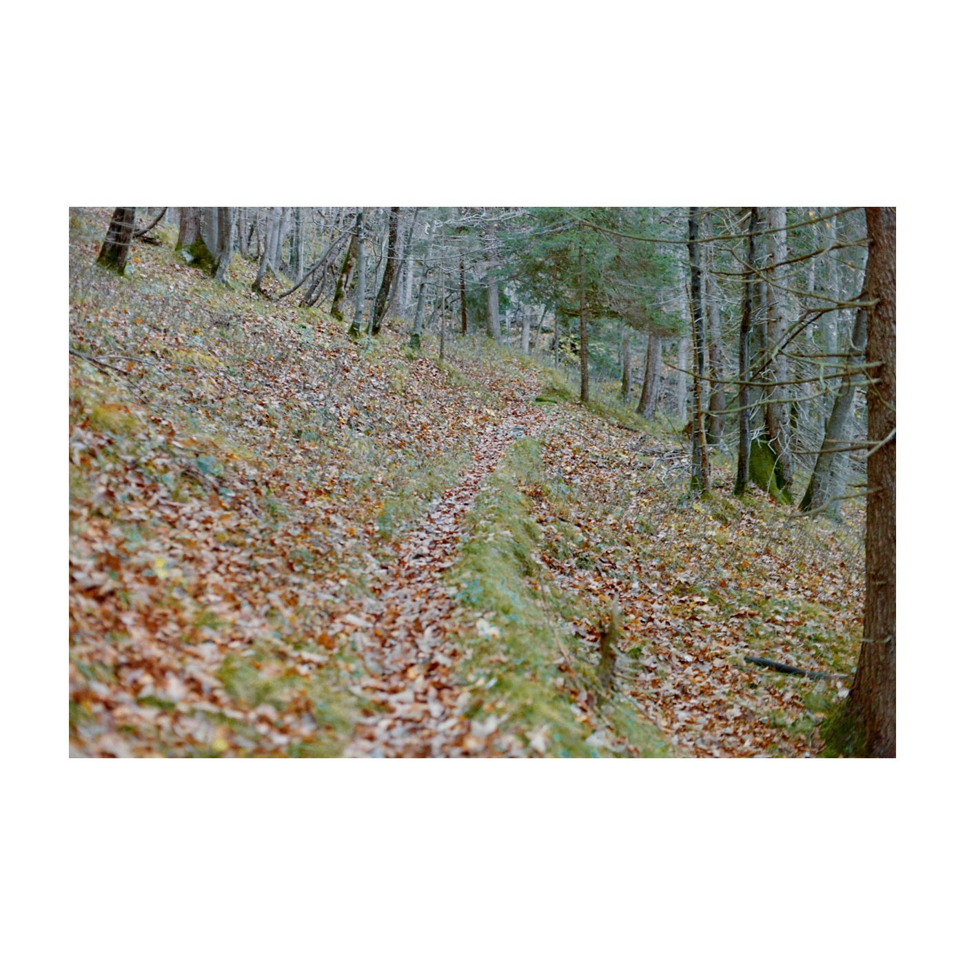 Als ich nun nach oben schaue, sehe ich erstmals wieder den Himmel durch die Baumstämme. Bei der Kante dort oben wird alles leichter. Bis dahin heißt es jedoch weiter durchzuhalten im steilen Waldhang. Wieso kommt mir in so einer Situation bloß eine Idee für die Arbeit?