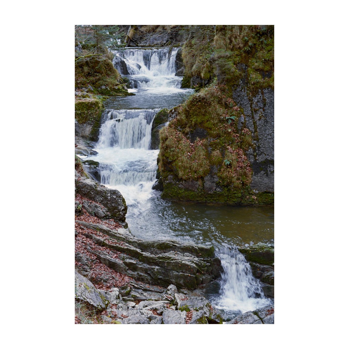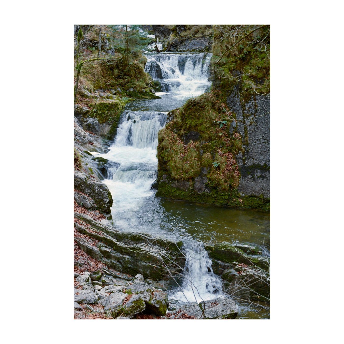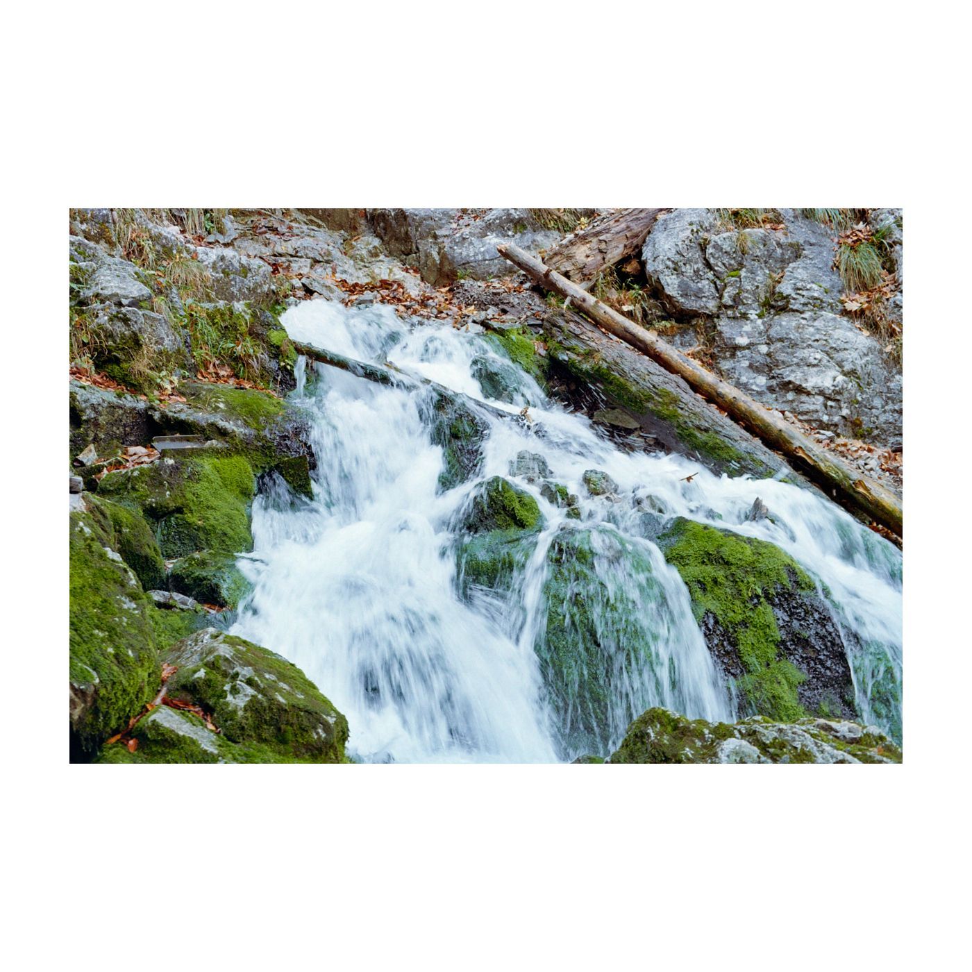 Wohin jetzt weiter. Der Weg verliert sich plötzlich. Dünne Spuren führen in alle Richtungen. An dieser Stelle haben vermutlich auch andere schon sehr viel ausprobiert. Eine rumpelige Spur führt unangenehm steil vorbei durch Gesträuch direkt auf den reißenden Bach und eine Steilstufe zu. Geht es wirklich dort entlang? Über große, rutschige, nasse Blöcke klettere ich immer näher an das weiße Gurgeln unter der kleinen Felswand heran. Echt jetzt?