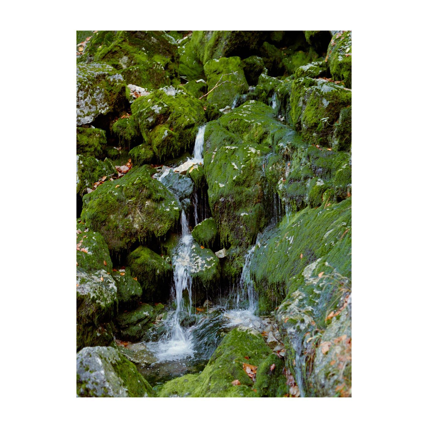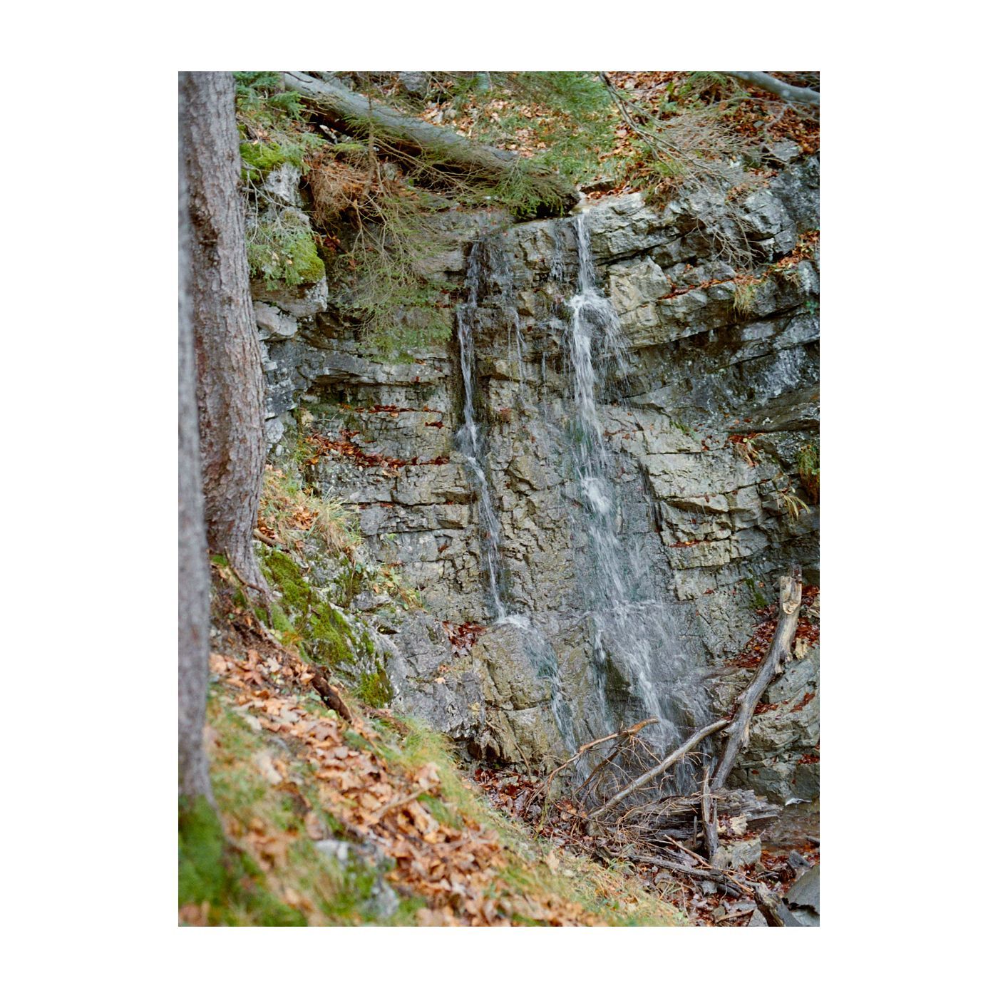 Ich starre wie gebannt auf die Quelle dieses Bachs. Alles Wasser kommt schäumend aus einer Öffnung im Fels, die vielleicht gerade einmal einen halben Meter im Durchmesser misst. Das Wändchen oberhalb davon ist furztrocken. Hier fängt der Bach an. Mit einem weit ausholenden Spreizen wechsle ich über das blubbernde Etwas hinweg auf die andere Seite des Grabens, geradeso als ob dort auf keinen Fall hineinstürzen dürfte. Vermutlich würde einen der Schlund eh sofort wieder ausspucken...