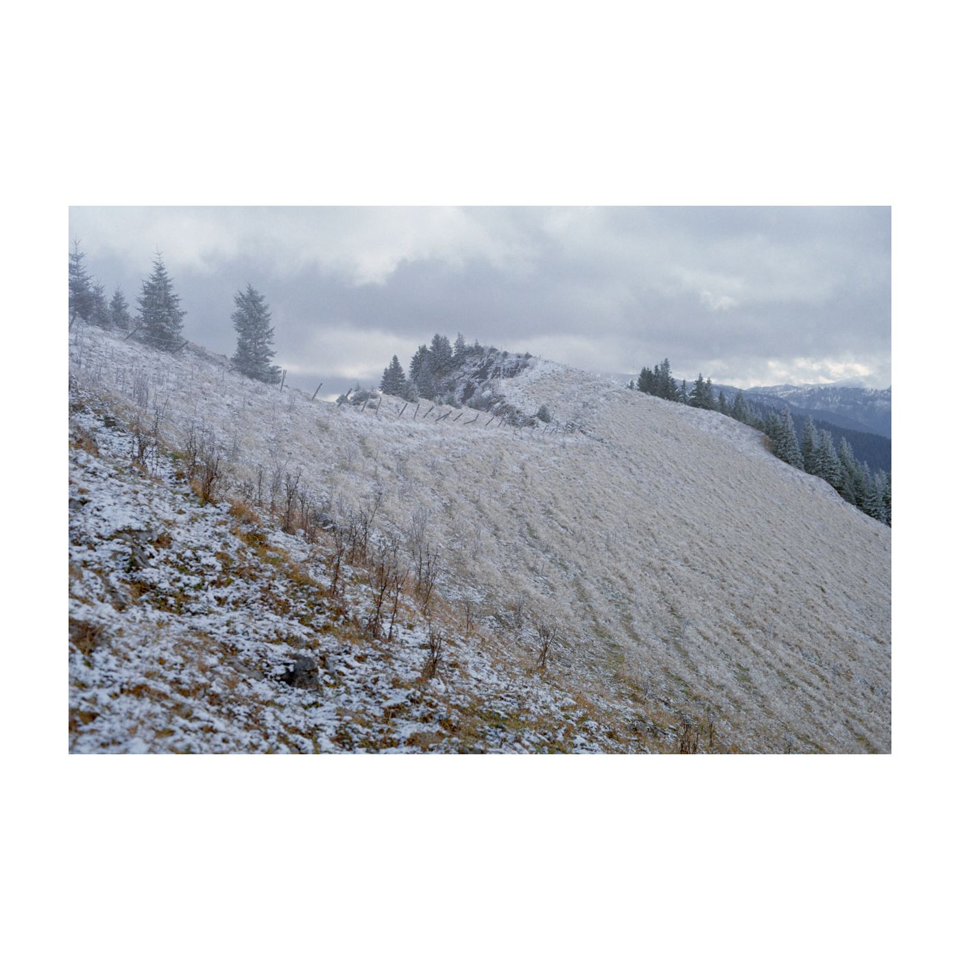 Endlich Bodenalm und ein richtiger Weg mit Hinweisschild. Nur noch eine halbe Stunde bis zum Gipfel! Es könnte so einfach sein, wenn der "Zucker" nicht gerade jetzt tauen und eine matschige Schmiere auf dem Pfad zurücklassen würde. Auf lehmigen Plateausohlen erreiche ich den Gipfel, und es kommt sogart die Sonne heraus. Es ist allerdings sehr windig und kalt. Nach wenigen Minuten ohne Handschuhe spüre ich kaum noch meine Finger. Der Zeigefinger kann nicht einmal mehr den Auslöser der Kamera ertasten. Auf was drücke ich da eigentlich?