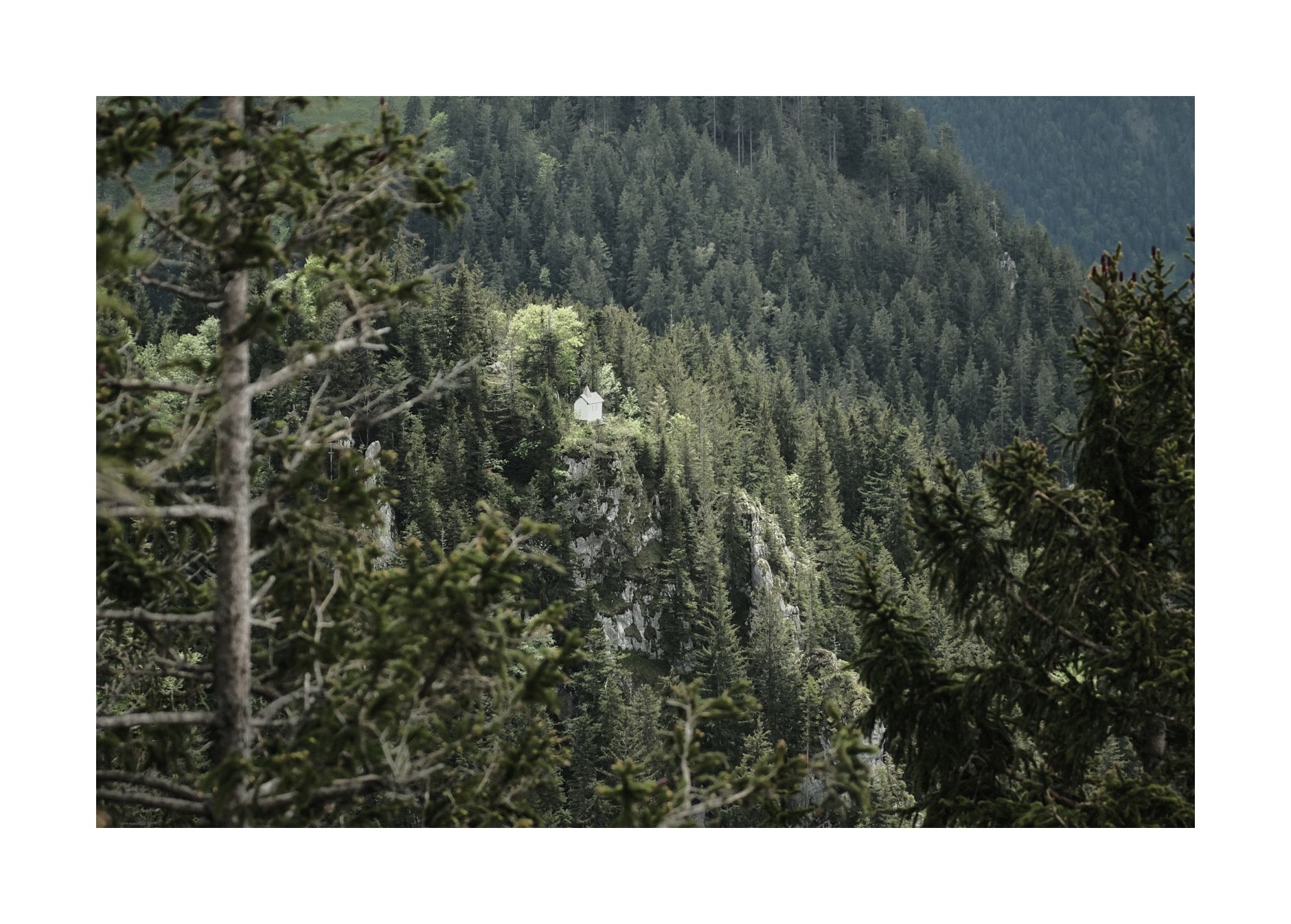 Nein, das wird nichts. In dem steilen Gelände kann man nur handheld arbeiten. Vielleicht fehlt mir auch einfach nur die Geduld. Das Fensterl muss ich mir noch einmal bei anderem Wetter und Licht anschauen. Und für den Blick hinüber zur Kesselalm Kapelle braucht man ein Tele. Merkliste!
