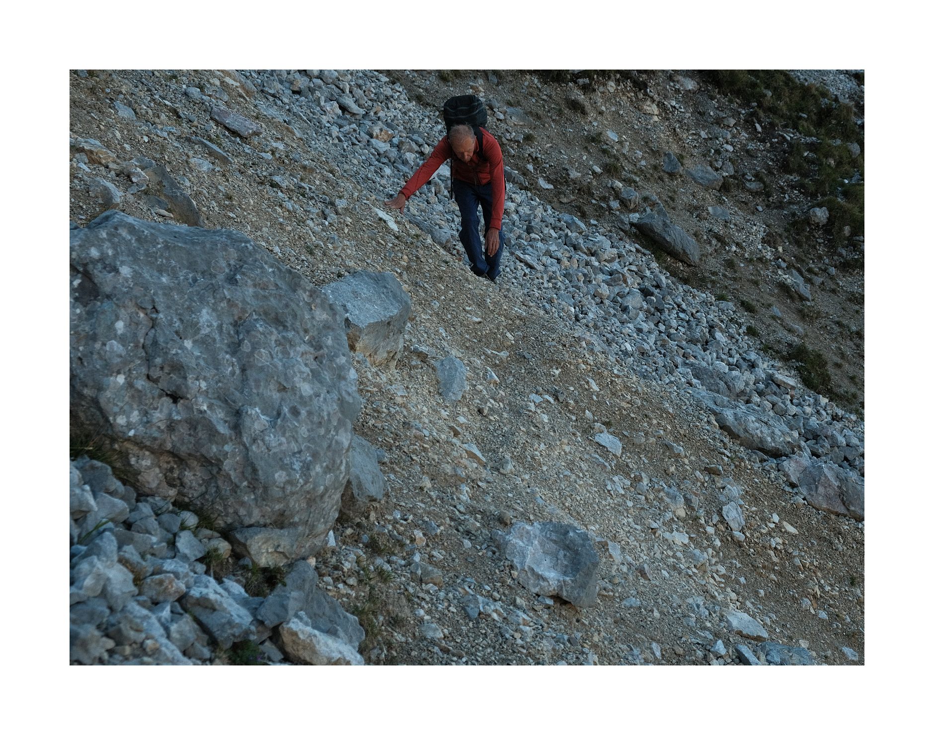 Der Abstieg über Schutt und Schrofen hinab zum 'bequemen' Weg ist - pardon - richtig scheiße. Nur gut, wenn einem niemand Steine in den Nacken kickt...