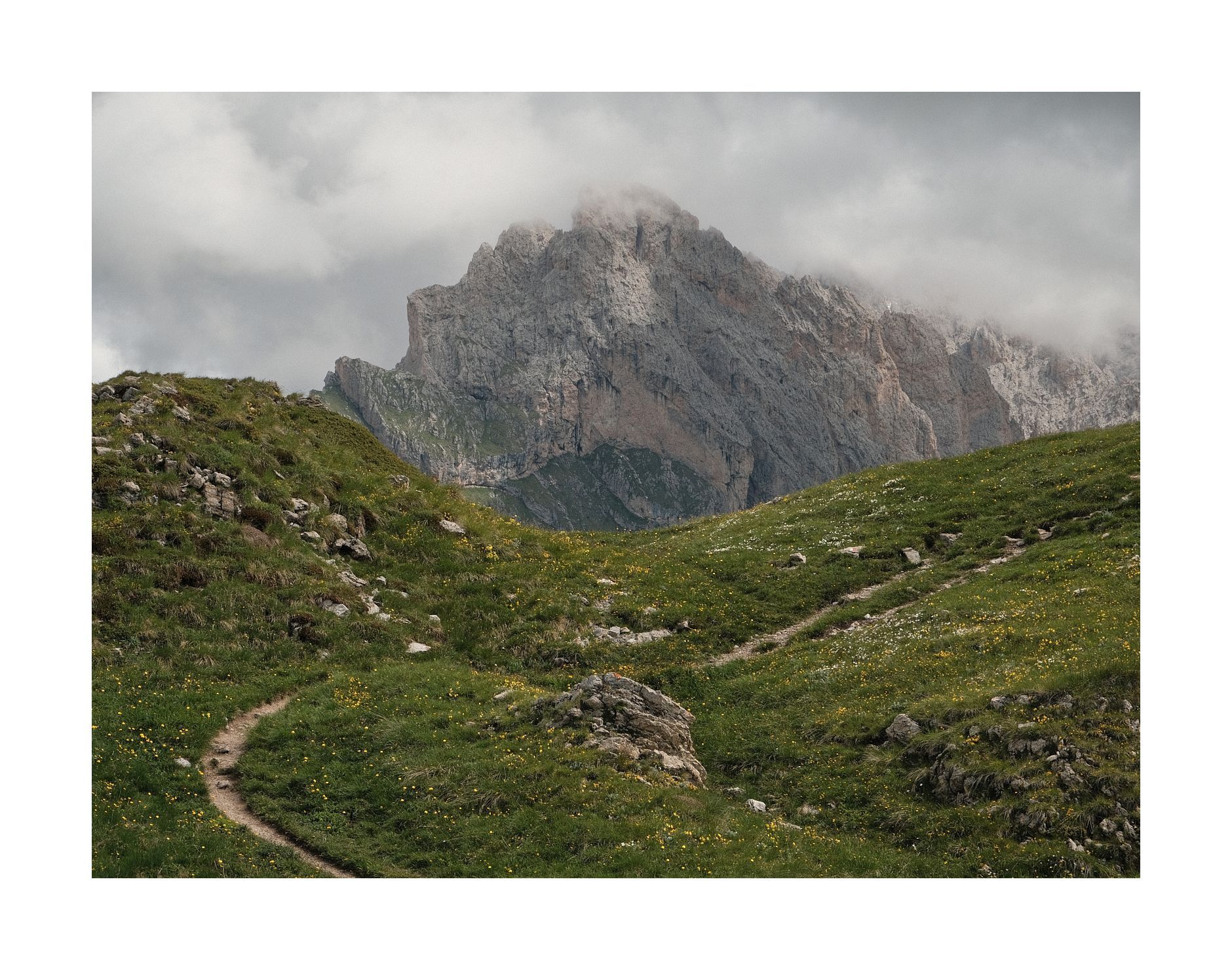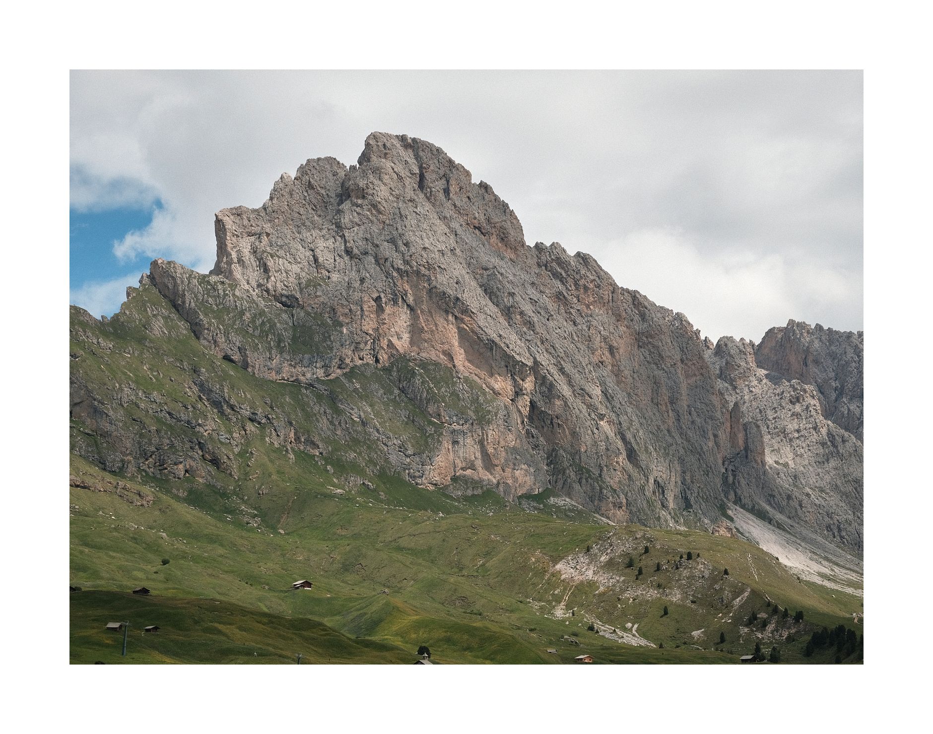 Wie immer nehme ich zuerst den intensiven Kräuterduft der Wiesen wahr. Unsere bayerischen Almen stinken einfach nur nach Kuhmist und -pisse. Die Grödner wissen hingegen, wie man den Touristen ein angenehmes, olfaktorisches Gesamterlebnis beschert.
