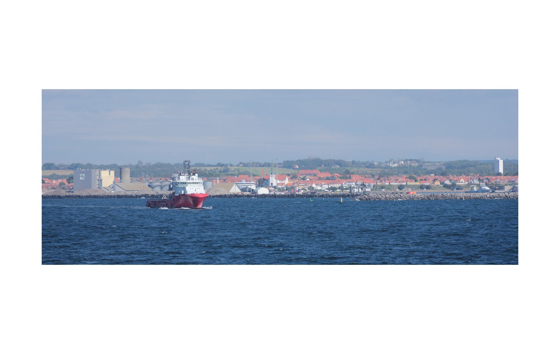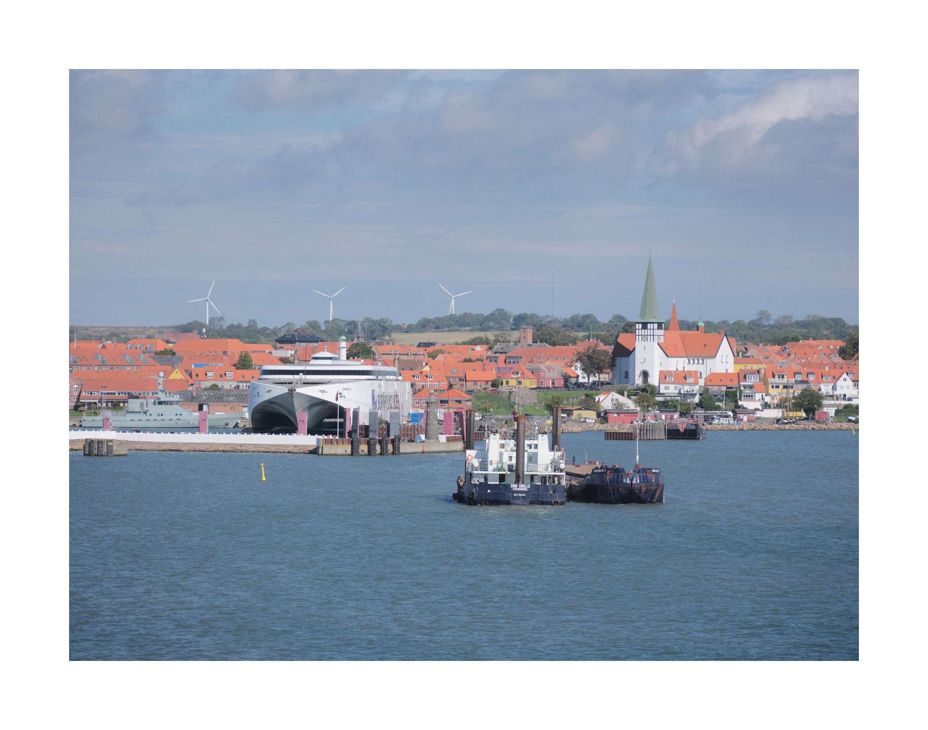 Die Bootfahrt mit dem Schiff vergeht wie im Flug vorbei an Rügens Kreidefelsen, vorbei an einer riesigen Offshore-Windenergieanlage und dann sieht man bereits Borholm am Horizont auftauchen.