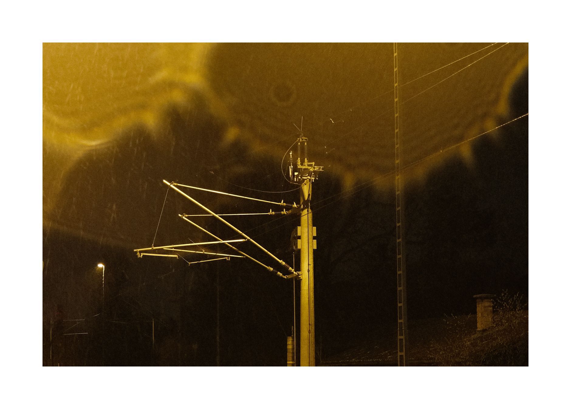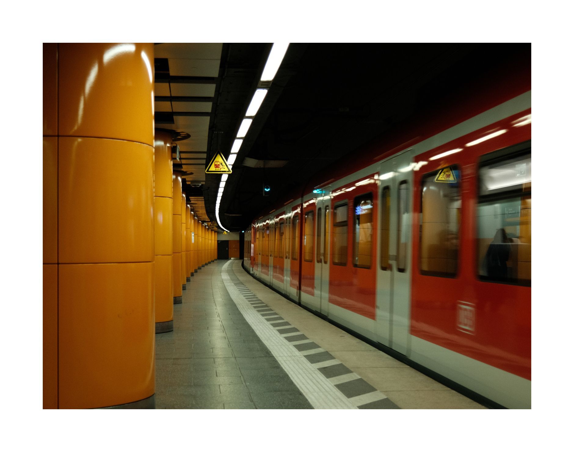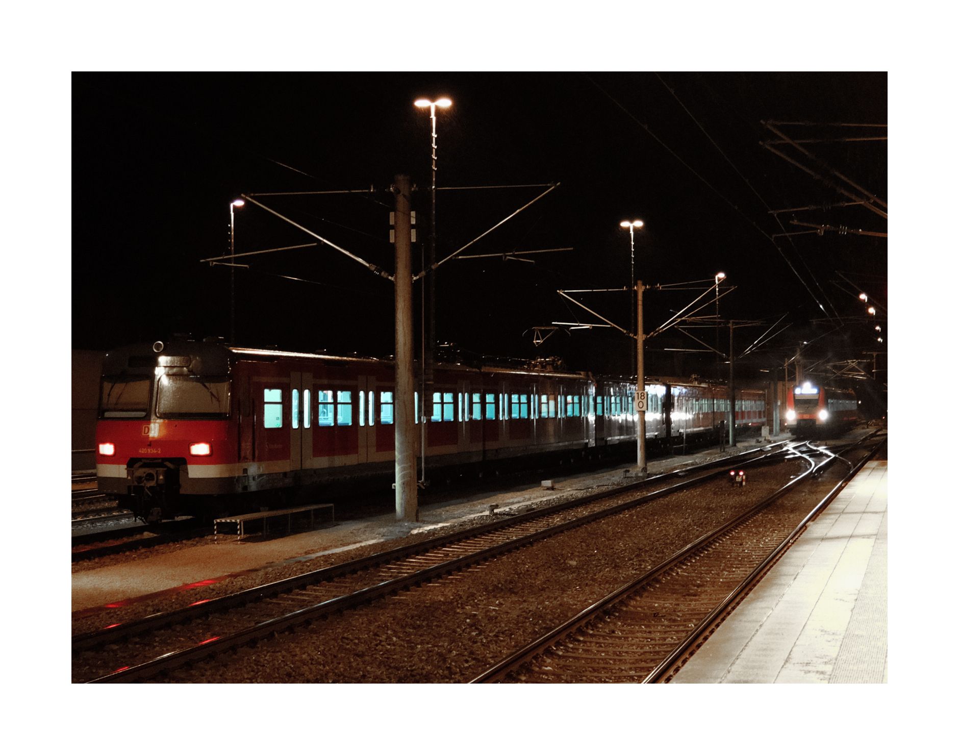 Hätte ich da doch nur die Kamera einfach in die Tasche gesteckt und auf die Bahn gewartet. Weil es regnet, muss ein klares Filter vor das Objektiv der X100V geschraubt werden, um die Wetterfestigkeit zu gewährleisten. Bei voll geöffneter Blende 2.0 und einer simplen Glasscheibe sind jedoch lens flares unvermeidbar. Der Effekt kann machmal auch künstlerisch verwertet werden. Mir gelingt auch das heute nicht.