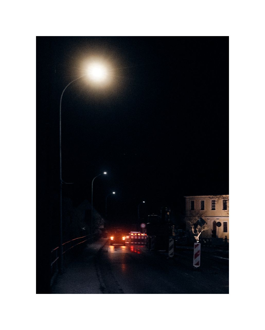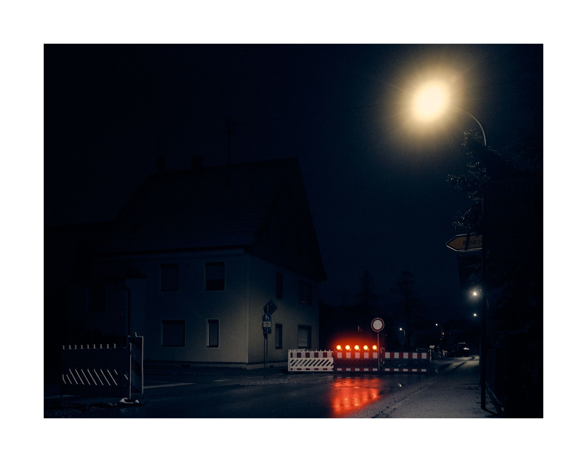 Das rettet diese Fotosession. Die Farben stimmen wieder. Jetzt kann ich Absperrungen, Leuchten und deren Reflexionen auf regennasser Farbahn wieder auf's Korn nehmen.