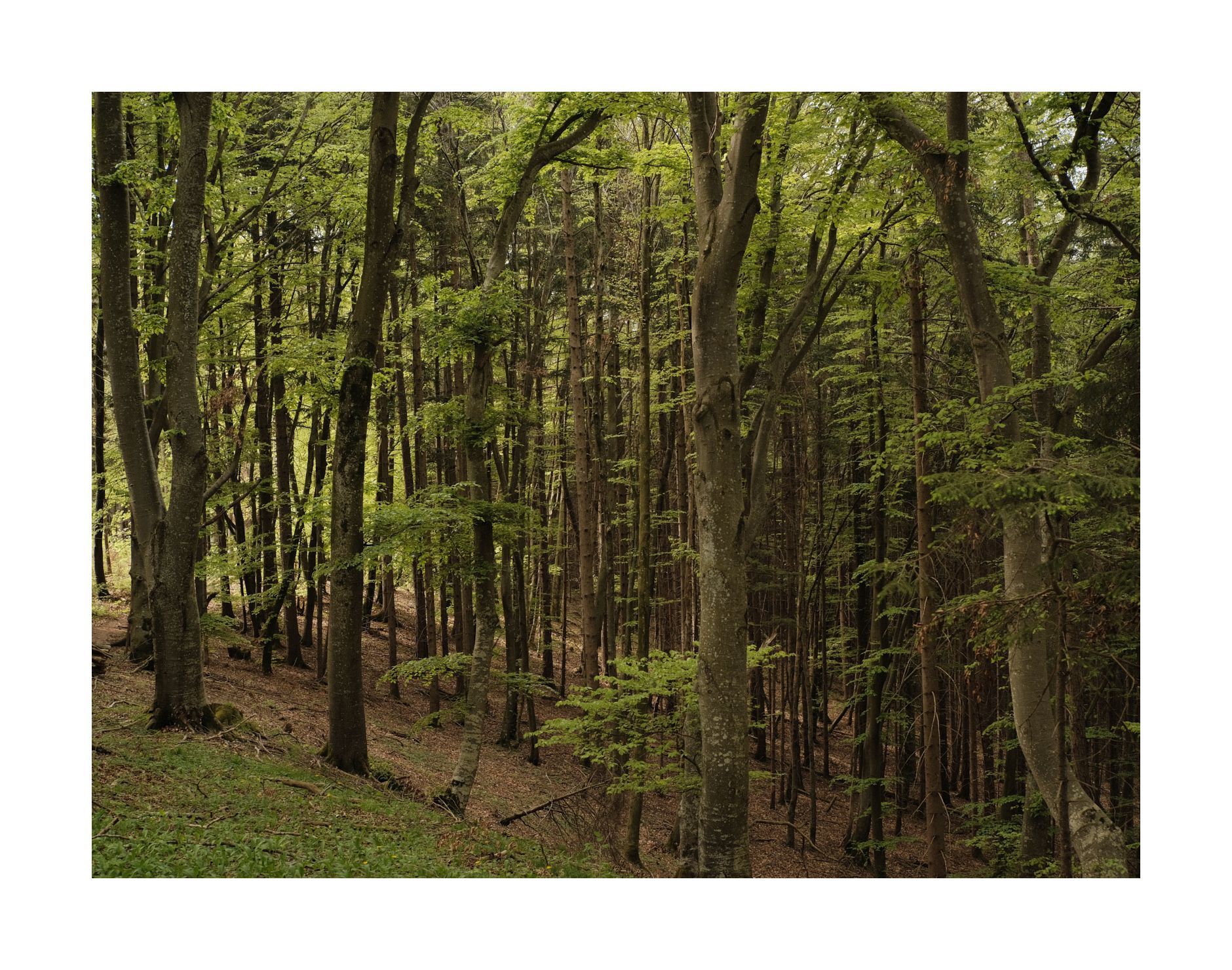 Der bewaldete Höhenrücken südlich des Galgenbühl lässt einen schnell den gräulichen Himmel vergessen. Das weiche Licht ist hervorragend für die Fotografie von Waldlandschaften geeignet.