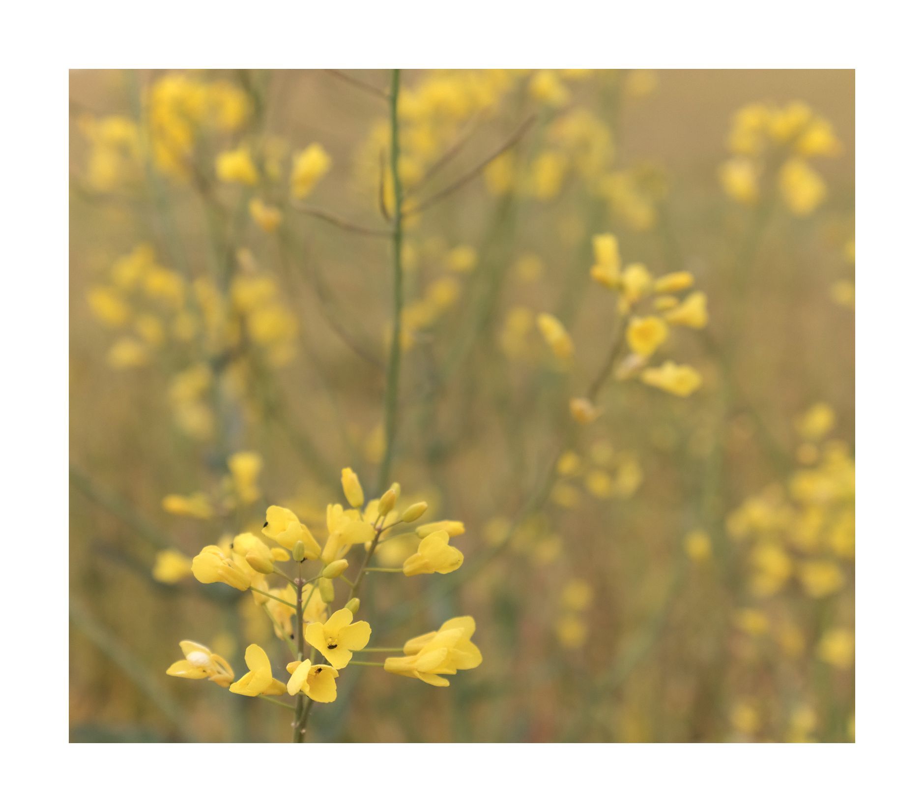 Auch die anloge Kamera ist dabei. 16 von 36 Bildern fehlen noch. Fällt mir dazu etwas ein? Nein! Rapsfeld unter bedecktem Himmel liefert nun mal kein knalliges Gelb ab. Zwei verschwendete Frames auf teurem Film. Wäre ich bloß mal wieder ins Bett gegangen...