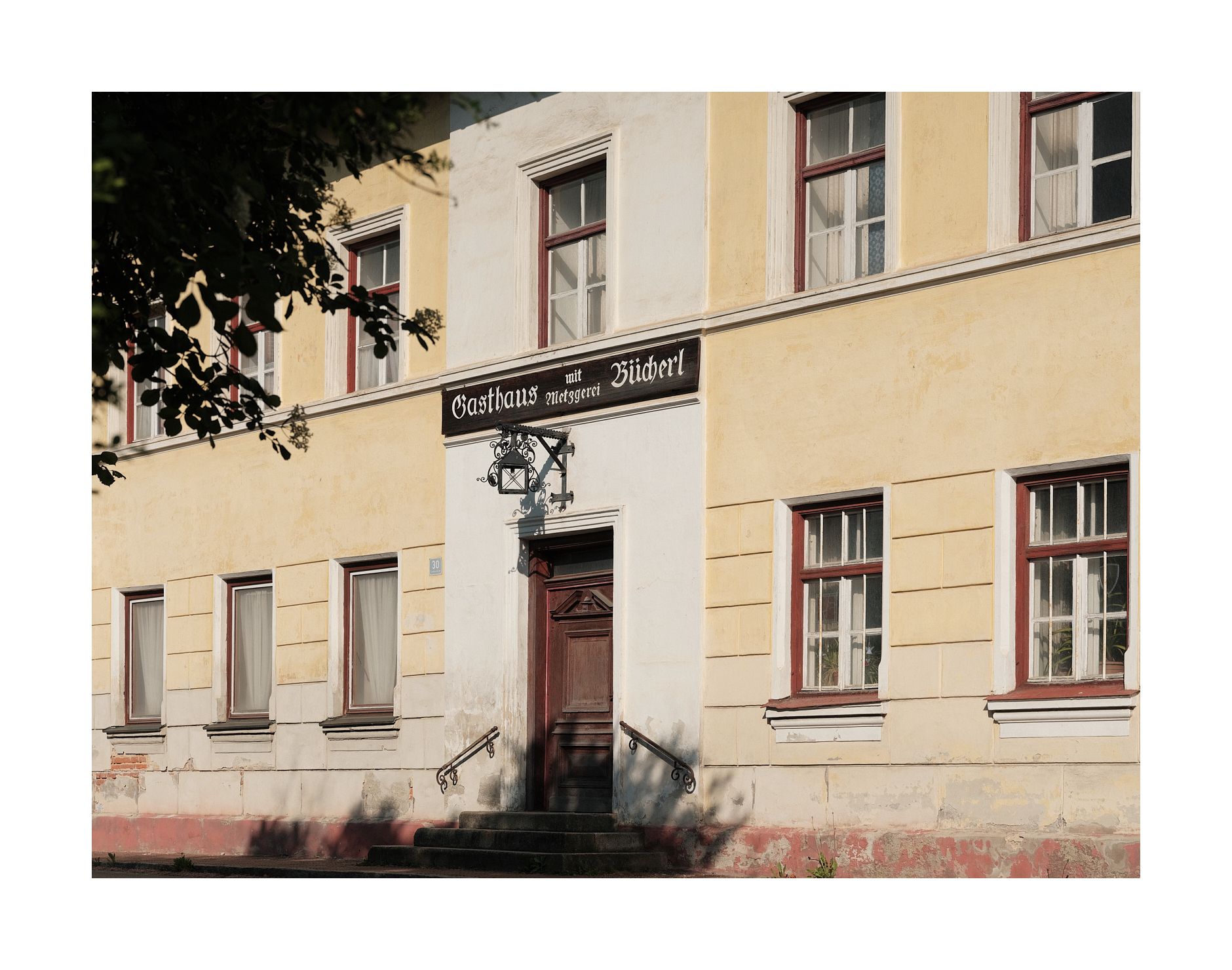 Die Landschaft ersscheint im grellen Sonnenlicht mittlerweile eintönig. Viele Bilder entstehen vorerst nicht mehr. Dann aber gelange ich nach Ebersbach und finde durch eine Lücke im Gebüsch ein offensichtlich älteres Gebäude. Es handelt sich um einen Teil des privaten Bauernhofmuseums "Auf der Puit". Eine Besichtigung ist leider nur für Schulklassen und nach Voranmeldung möglich. Vielleicht geh ich doch nochmal auf die Volkshochschule?