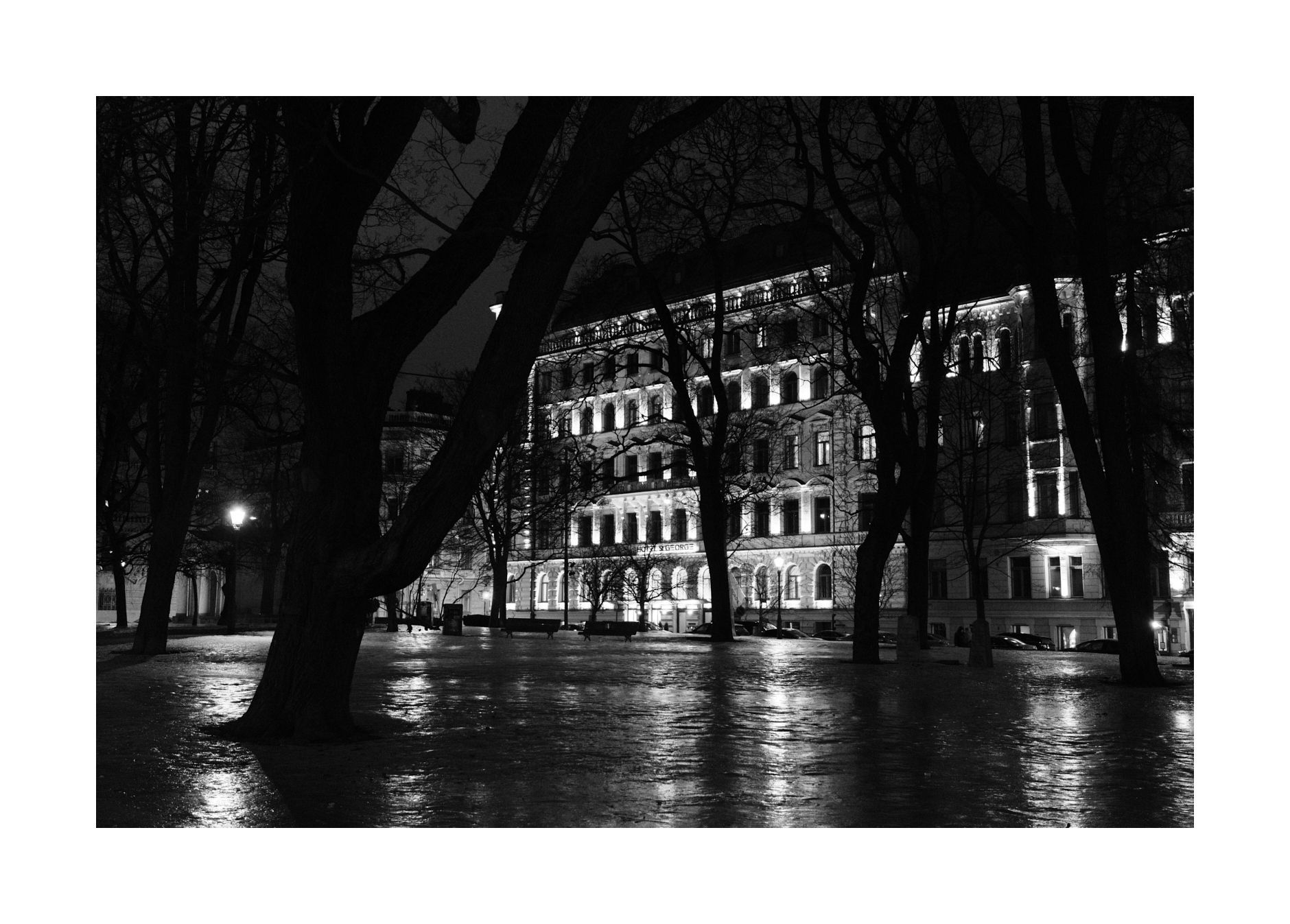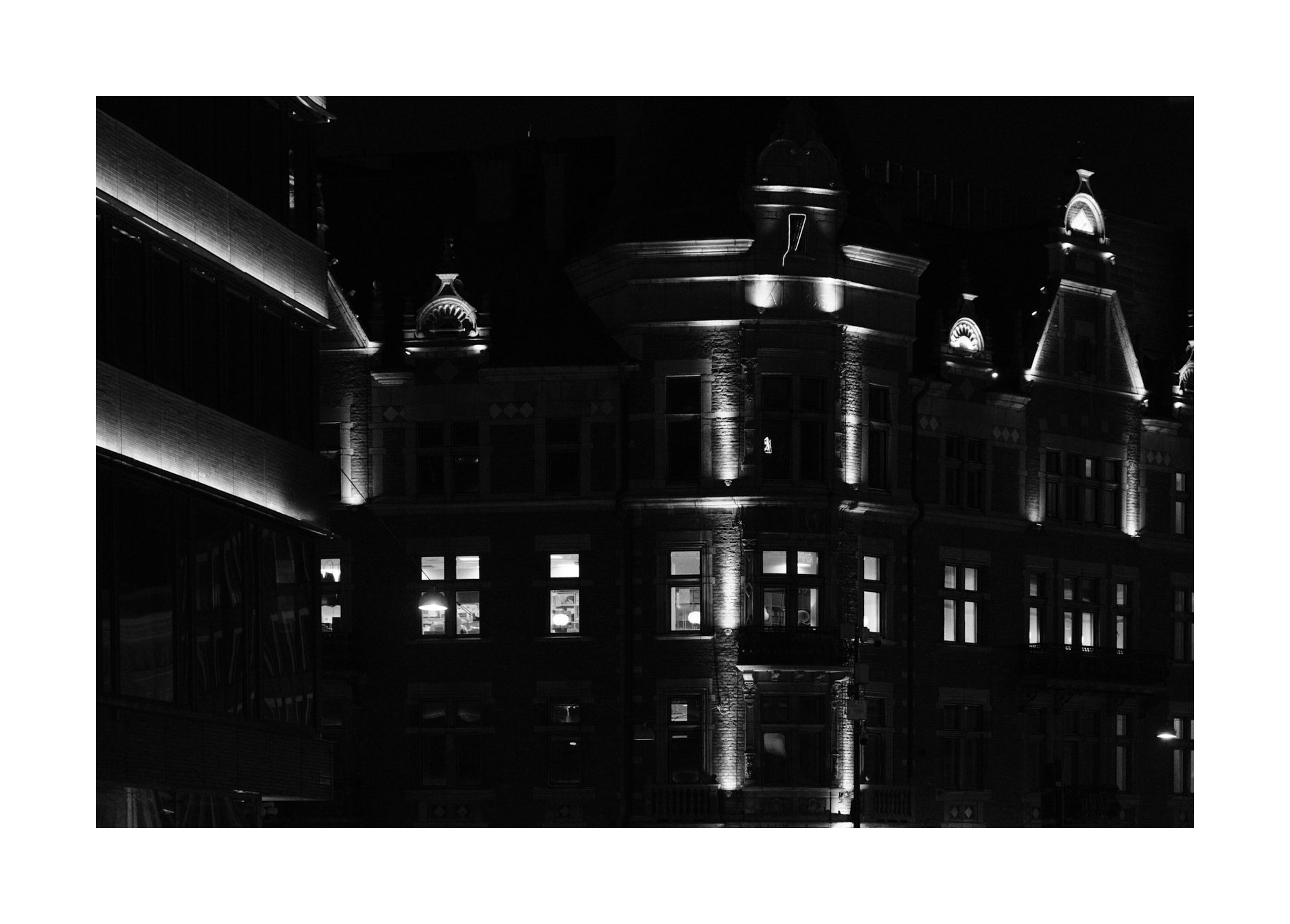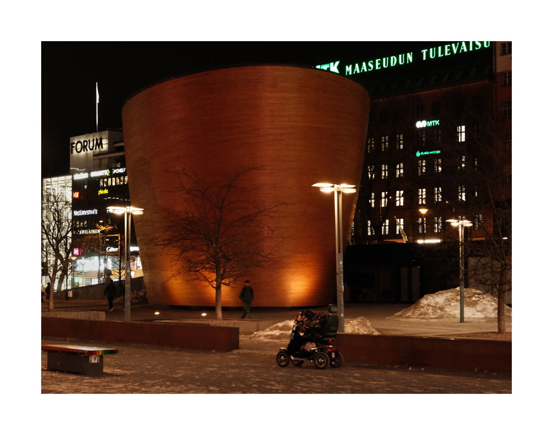 Eines der gelungensten Fotos dieses Abends könnte überall auf der Welt entstanden sein. Zwei Laternen stehen ohne Ortsbezug und völlig zeitlos vor der Kapelle der Stille und leuchten die Szene stumm mit ihrem Licht aus. Das könnte überall auf der Welt sein. Dafür hätte ich nicht unbedingt nach Helsinki fahren müssen, oder doch?