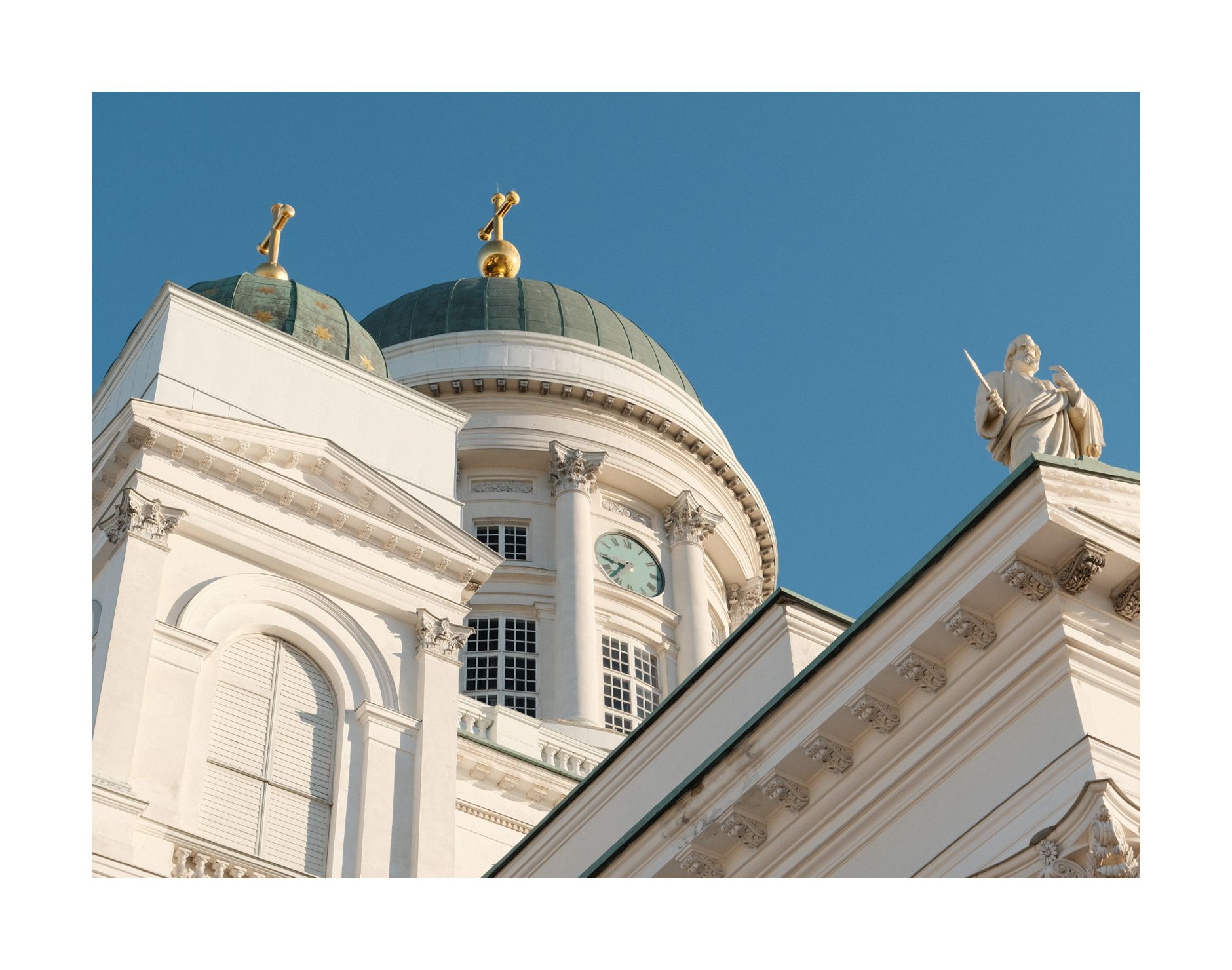 Ich bin anders. Während normale Touristen mit einer Stadtrundfahrt beginnen würden, schnappe ich mir lieber den Fotoapparat und ziehe los, entweder zu Fuß oder mit den Öffis. Heute beginne ich mit der Tram, steige aber schon nach drei Stationen wieder aus und schlängele mich in Richtung Hafen durch die frühe Innenstadt. Es kommt wie, es kommen muss. Ich stehe unter dem leuchtenden Dom, einem Hotspot für alle Besucher von Helsinki.