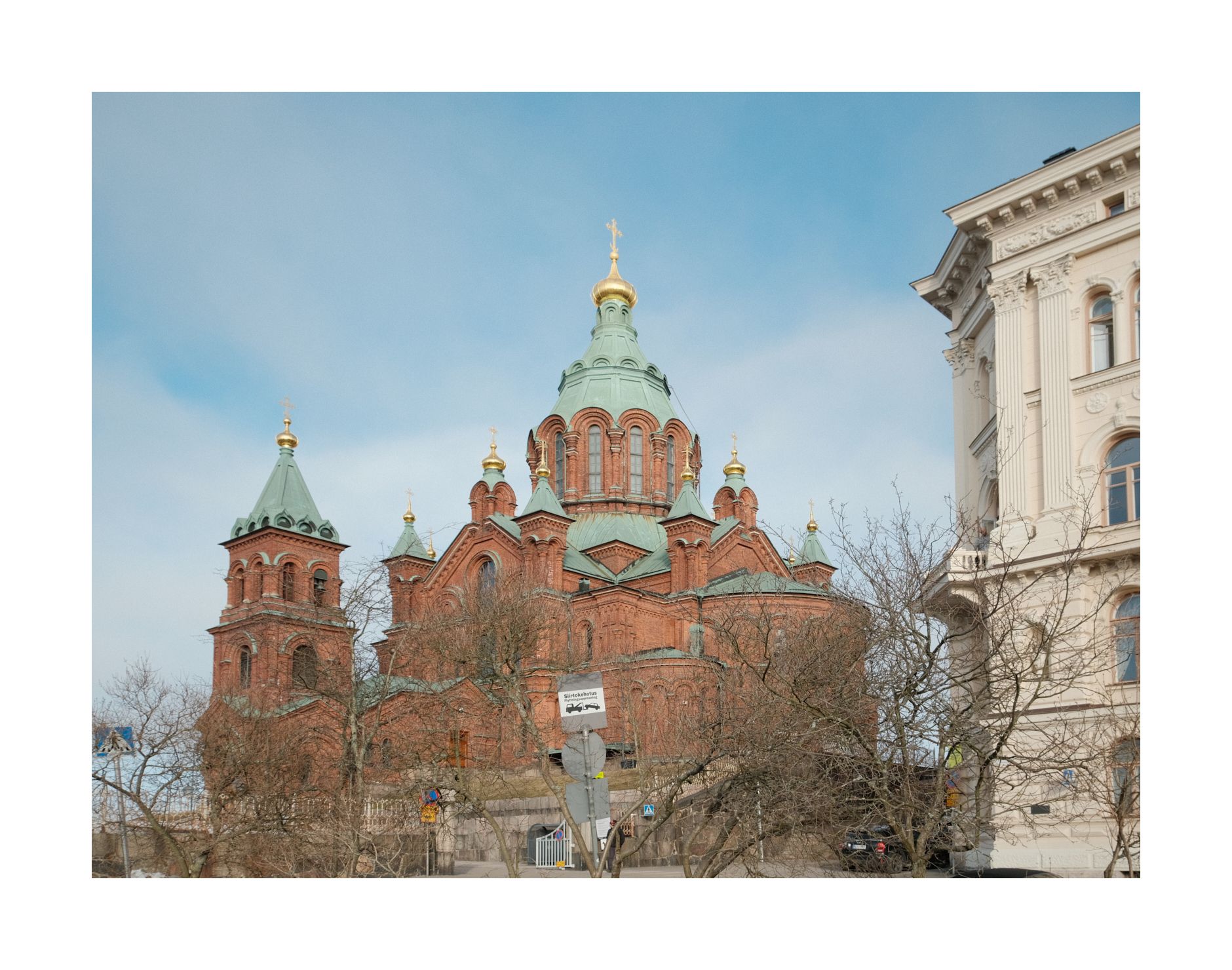 Uspenski Kathedrale steht am Eingang zur Halbinsel bzw. dem Stadtteil Katajanokka. Dort hat z.B. die Finnische Eisbrecherflotte ihre Liegeplätze. Leider sind die Eisbrecher zu dieser Jahreszeit alle beim Spielen in der Ostsee...