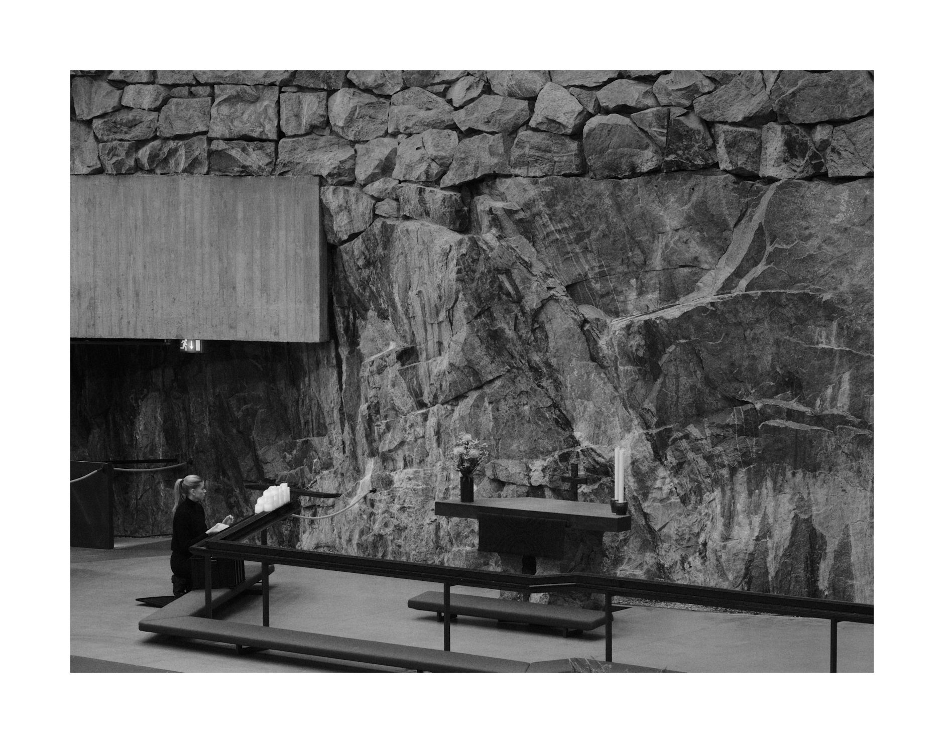 Irgendeine Veranstaltung wird hier gerade vorbereitet. Ein junge Frau stellt vor dem Altar kniend Kerzen auf. Das ist natürlich mein 'Streetfoto' des Tages.