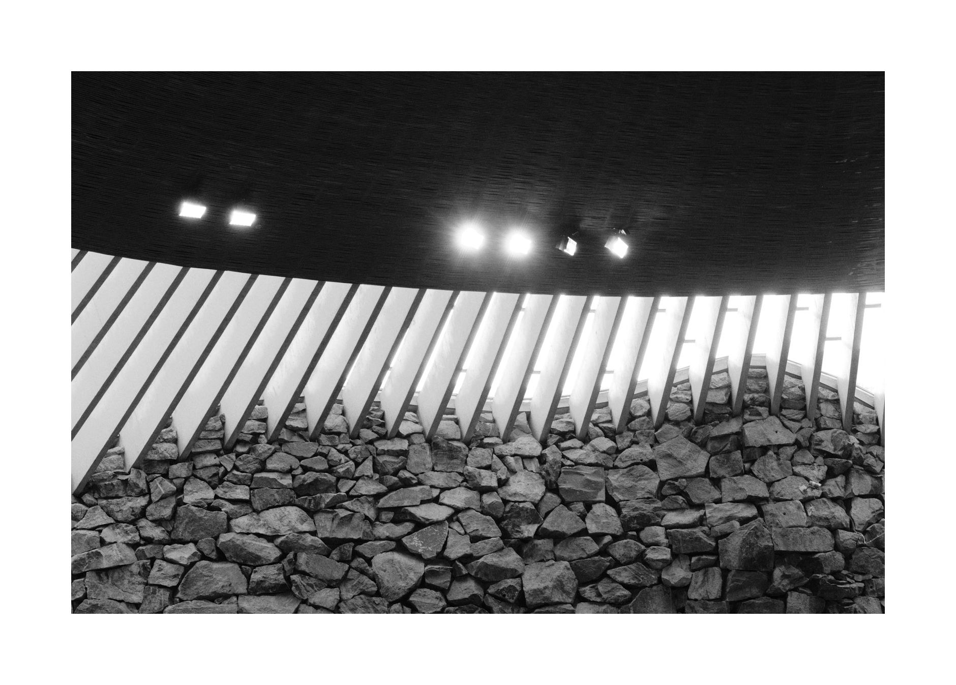 Von außen fällt die in den Granit eingelassene Kirche dann jedoch kaum auf. Das Wort Bunker schießt mir durch den Kopf. Dann habe ich es aber. Das hier muss einer der Drehorte des Films 'Iron Sky' sein. Tja die Finnen, Nazis in einer Kirche auf der Rückseite des Mondes...
