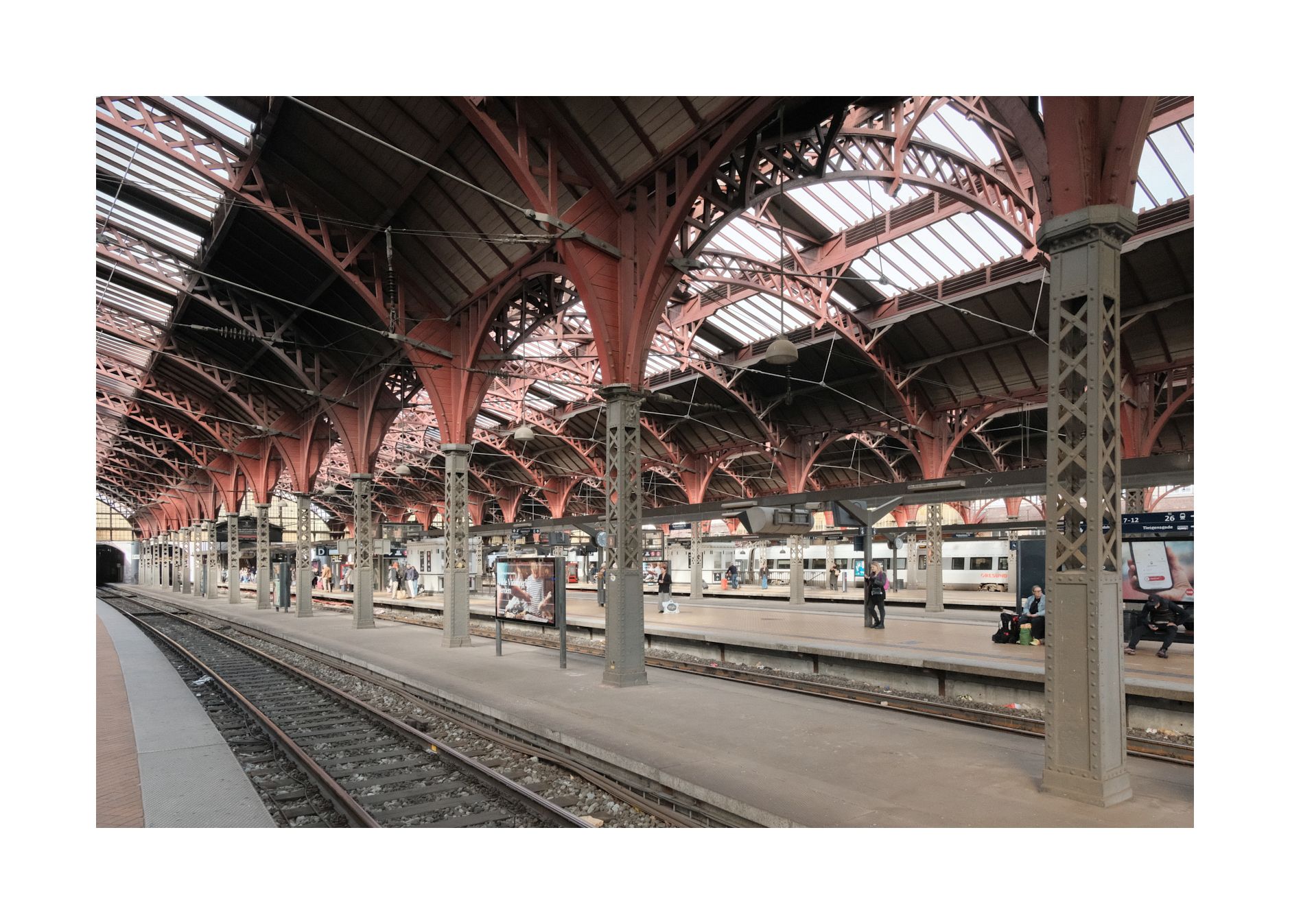 Der Bahnhof hat eine seltsame Wirkung auf mich. Das ist zum einen die große, hohe Haupthalle, die Quer zu den Gleisen verläuft, und zum anderen die enge, dunkle Welt darunter. Irgendwie stimmen die Proportionen nicht. Die Haupthalle ist mehr als ein künstlicher Himmel ein ganzes Universum aus Streben, Bögen und Fenstern. Die Abgänge zu den Gleisen sind hingegen dunkle, unscheinbare Löcher, die kaum Lust auf eine Reise mit der Bahn machen. Unter dieser unproportionalen Welt befinden sich dann noch die dunklen, abweisenden Katakomben, die unter den Bahngleisen eine Verbindung zur METRO-Station schaffen.