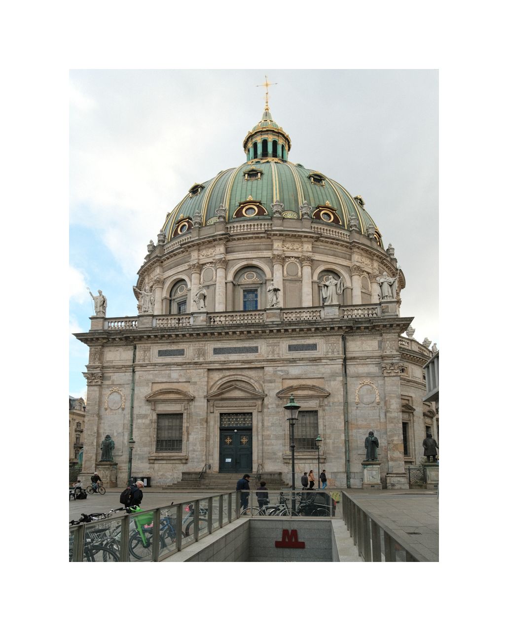Weit komme ich nicht, weil die unterirdische, vierstöckige METRO-Station mich noch einmal an den Fotoapparat fesselt. Als ich es endlich an Tageslicht schaffe, betrete natürlich auch ich das weithin sichtbare Kirchenmonument. Nicht schlecht, aber mir fehlt mittlerweile die Kraft ein gutes Foto zu komponieren. Hundert Meter weiter spielt die Marschkapelle zum Wachwechsel in Amalienborg auf. Mir ist das aber auch schon egal...