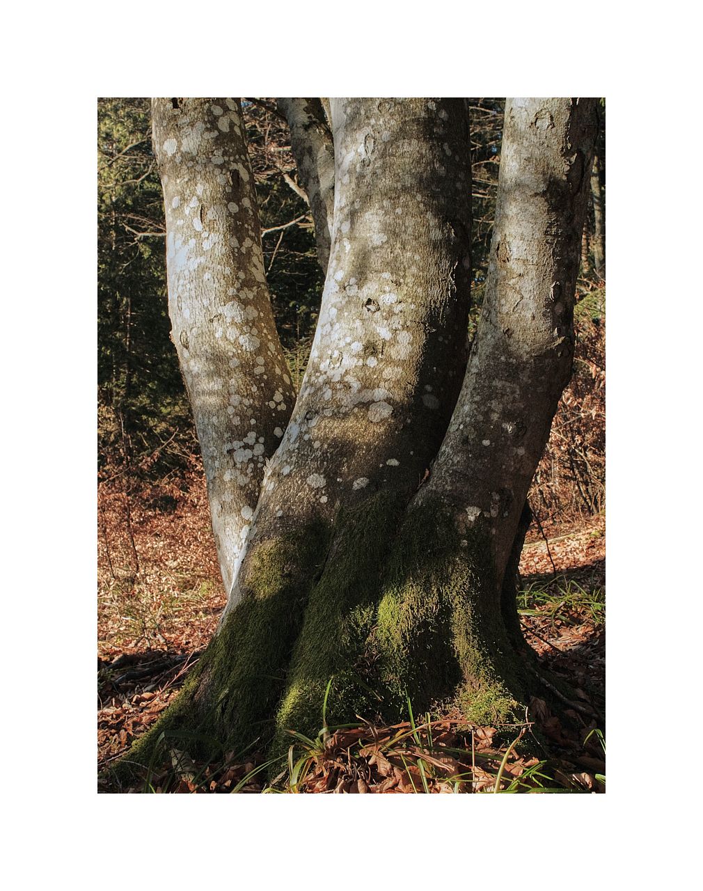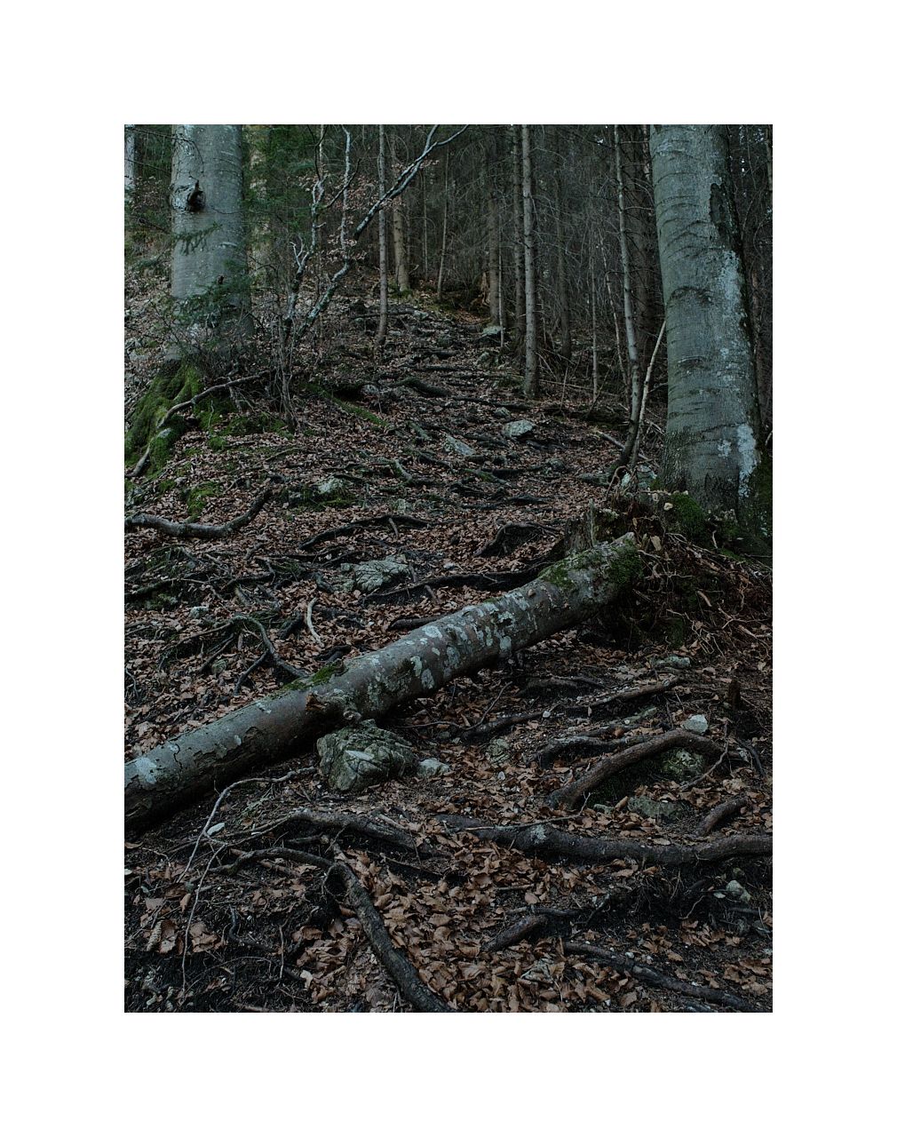 Was sind schon 10 Zentimeter? Der Ausblick von der namenlosen Höhe ist aussichtslos. Ich versuche mit Mühe und Not ein Erinnerungsfoto zu kreieren, schaffe jedoch nur das wenig aussagekräftiges Bild eines Baumfußes. Lieber zurück zum Ringspitz und dann abwärts nach Buch. Der steile, matschige Weg ist im Abstieg kaum schneller zu bewältigen als im Aufstieg. Da bin ich dann doch froh endlich wieder an der Kreuzung zu stehen. Ich biege nach links auf einen alten Forstweg ab, der in einem großen, weitläufigen Rechtsbogen wieder ins Tal führen soll. Das geschieht nicht etwa, weil ich an einem ausgeprägten Rundwegzwang leide, sondern um den Morastpassagen im unteren Teil zu entgehen.