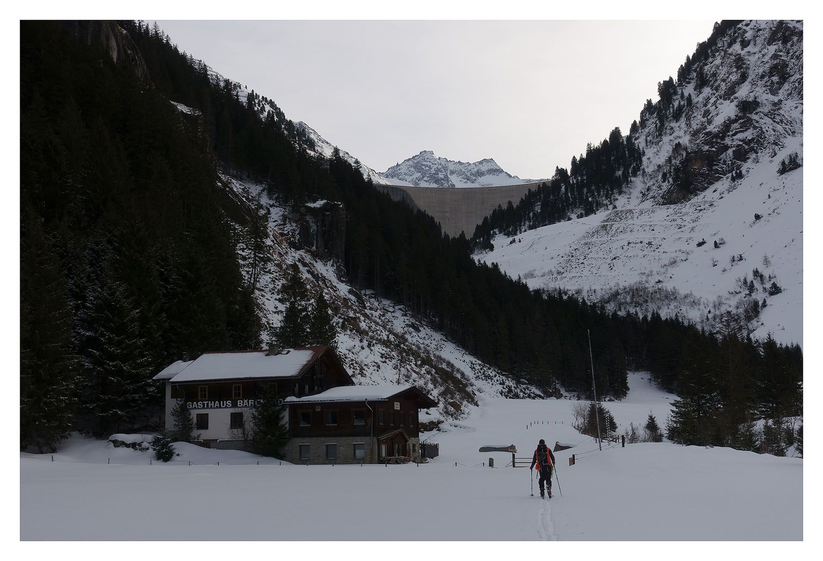 Die Verkehrslage ist erfreulich entspannt. Ohne Stau durchs Zillertal, durch den Zillergrund und bis zur Bärenbadalm. Keine Maut (im Winter) und sämtliche Lawinenschranken sind geöffnet. Sonst würde der Anstieg bis zur Plauener Hütte wirklich sehr lang werden.