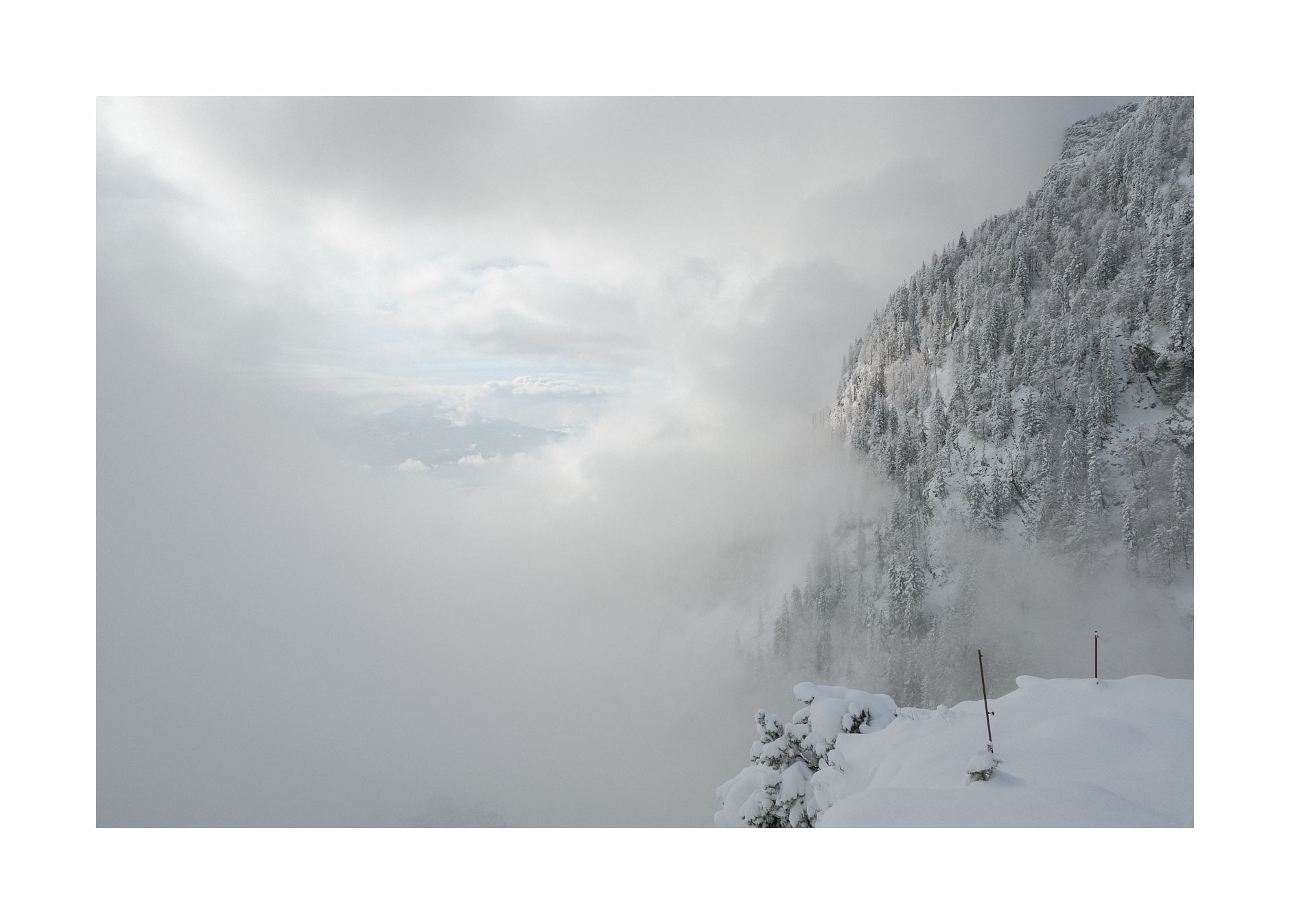 Feuerköpfl. Keine Sonne, kein Ausblick und keine Ahnung wie es weitergeht. Ich vertreibe mir die Zeit am „Gipfel“ mit Fotografieren. Ich fotografiere, was mir vor die Linse kommt. Viel ist es ja nicht. Den Ausblick auf Kaisergebirge oder den Alpenhauptkamm gibt es heute nicht. Man kann nicht einmal das Inntal sehen, aber hören! Die Autobahn rauscht im trüben Nebel dahin.
