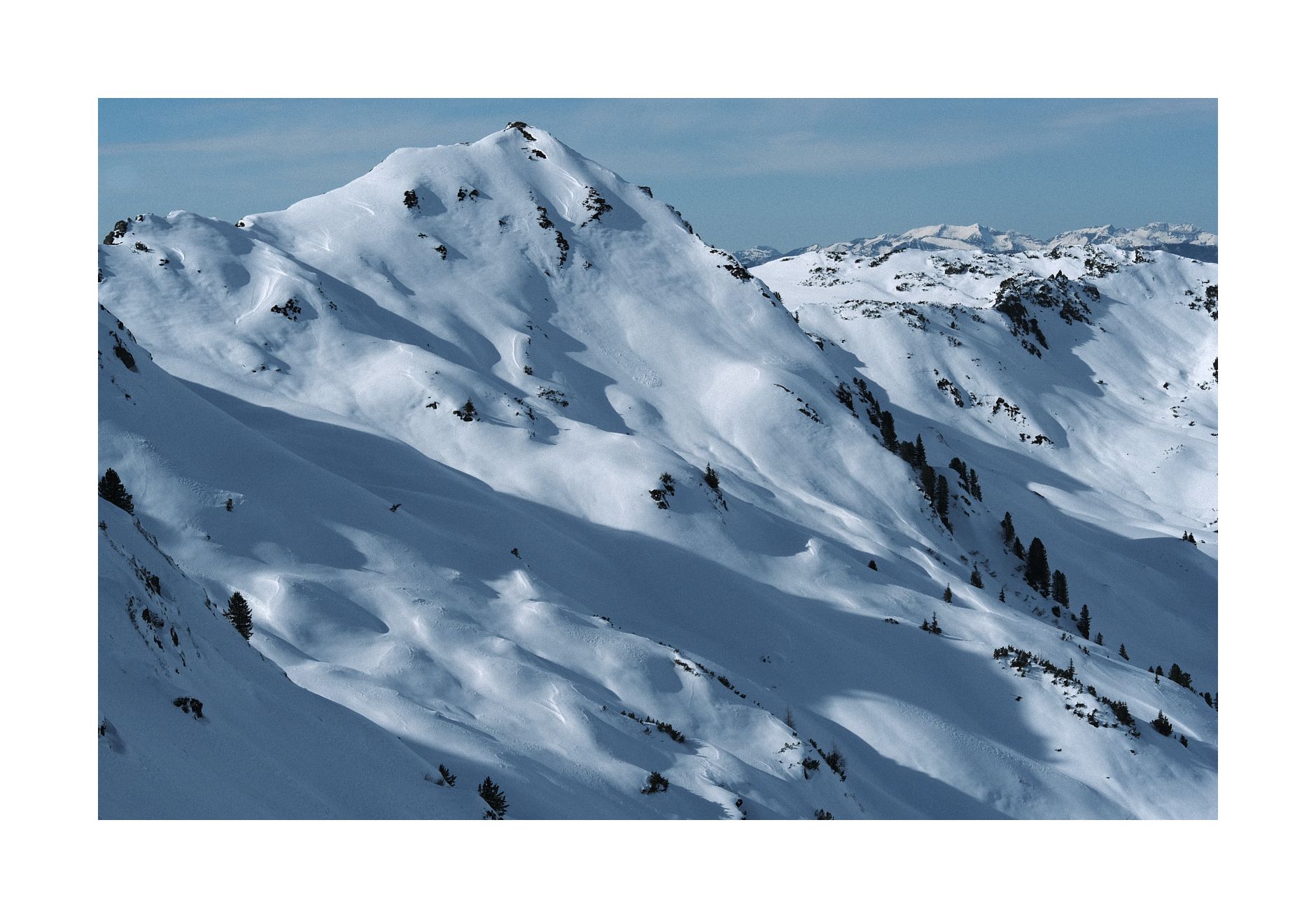 Über den schmalen Grat trete ich den Abstieg an. Und der soll noch lange dauern. Die Skifahrer haben den Hang bereits ordentlich abgefahren – besser abgerutscht – und die fluffigen Schneeflächen für einen eiligen Schneeschuhabstieg fehlen oft. Als ich die Haglangeralm erreiche, glaube ich schon, das Gröbste hinter mir zu haben. Schlimmer geht immer! Im Bereich der Labalm ist der Schnee dünn, eine wässerigen Schicht auf Eisplatten. Die Eisplatten haben kaum noch Bindung zum Untergrund. Wenn man hier nicht die Schneeschuhe ordentlich in den Boden stampft, dann kommt es zum unfreiwilligen Spagat im steilen Almgelände. Drei Mal stürze ich. Noch nie war ich so froh, endlich den langen Talhatscher zu erreichen.