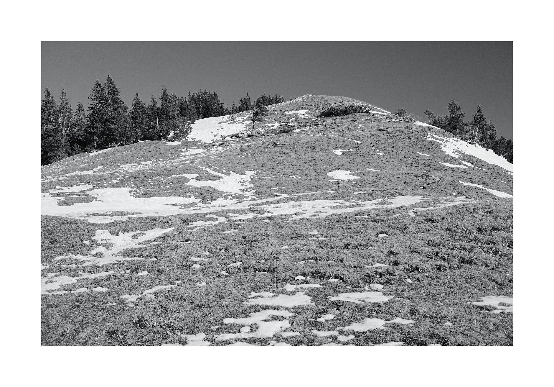 Übrigens, damals vor acht Jahren, im dichten Schneetreiben, da war es auf diesen schmalen Karwendelbuckel fast noch schöner. Ein wolkenloser Himmel kann auch ganz schön fad sein…