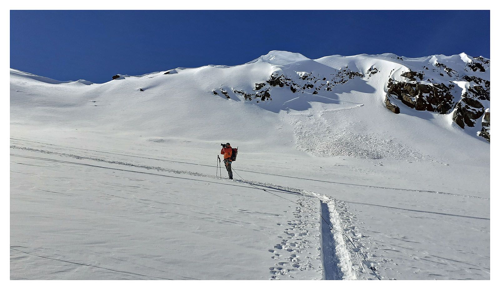 Der uns folgende Schneeschuhgeher mit der Gitarre im Rucksack - ach, das ist ein Snowboard? - hat sich schließlich auch nicht beschwert...
