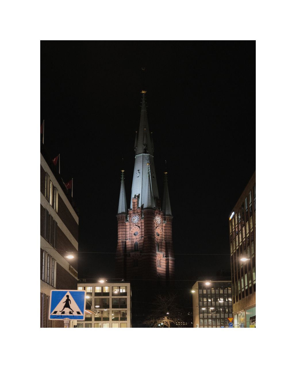 Im Chaos des Lichts stolpere ich weiter durch Stockholms Innenstadt. Die Klarakirche könnte ein konstanter Ruhepol sein. Leider kann ich heute nicht auf das schmale Kirchengelände gelangen. Die Tore sind verschlossen und die grelle Stadt drängt sich viel zu dicht an die Kirche.