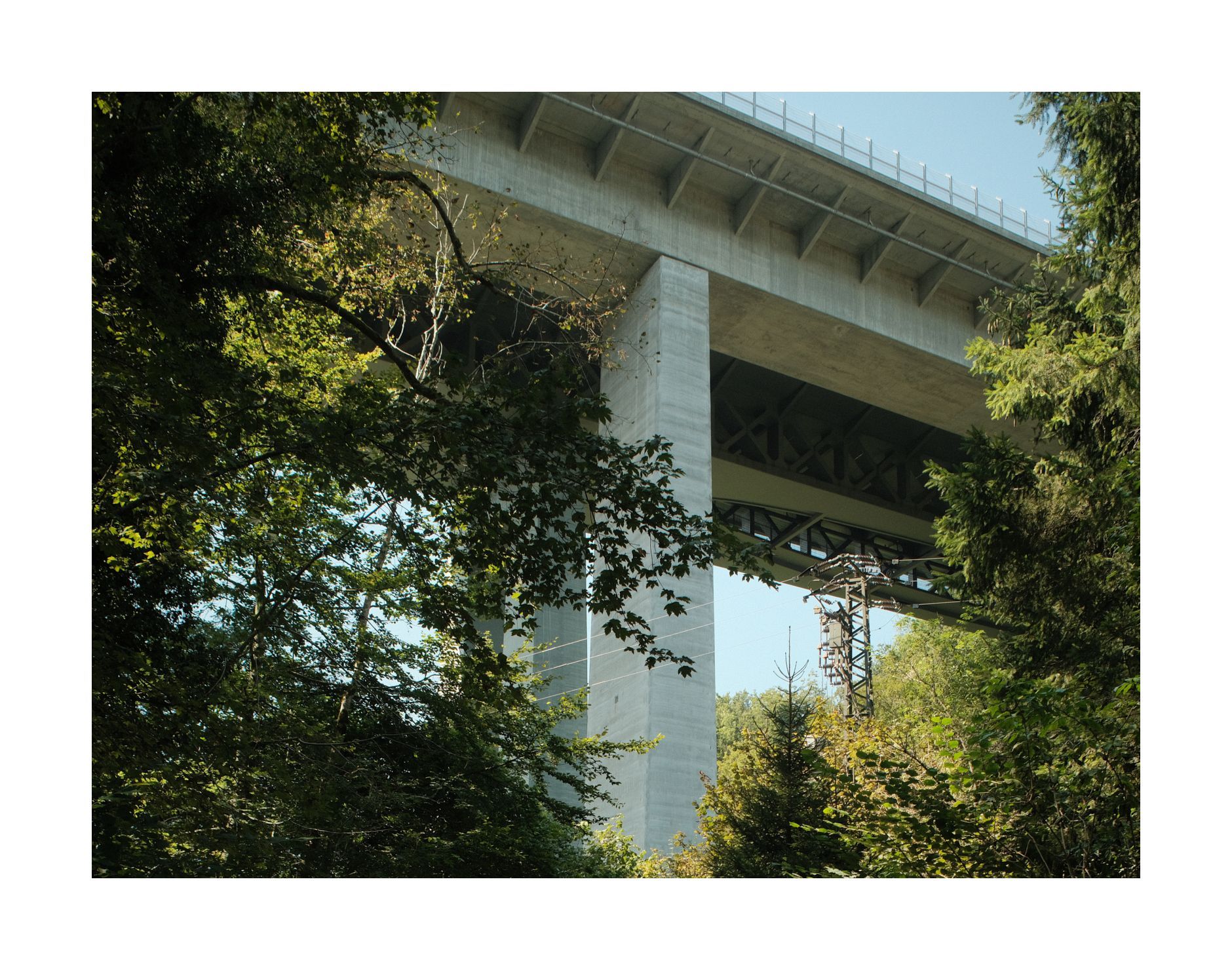 Auch der Autobahnbrücke kann ich nicht wirklich ein gutes Bild abringen. 10 mm Shift genügen übrigens nicht, um die Pfeiler von ihrem Fuss bis zum Brückenlager aufs Bild zu bringen. Die Kamera muss auch noch geschwenkt werden.