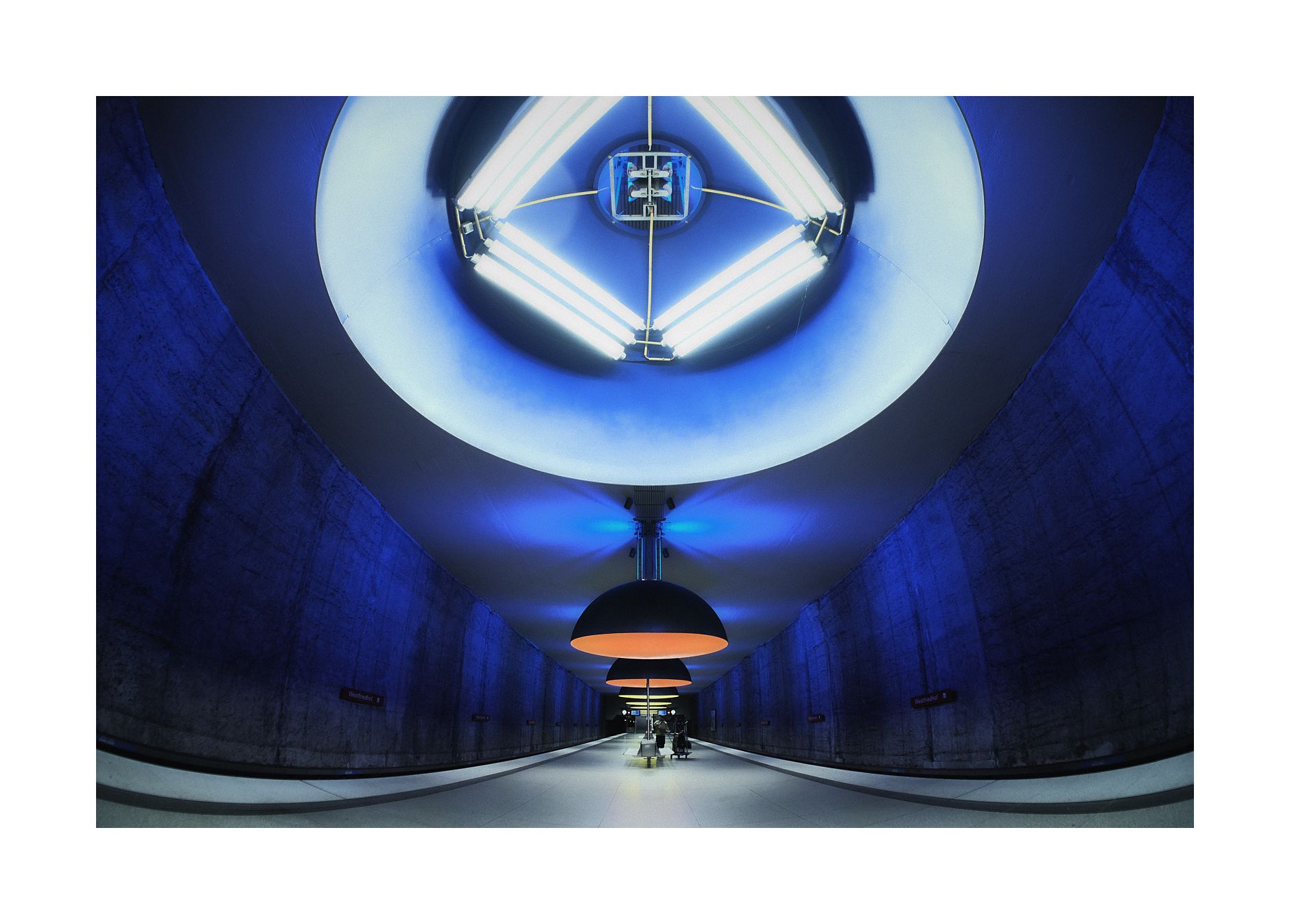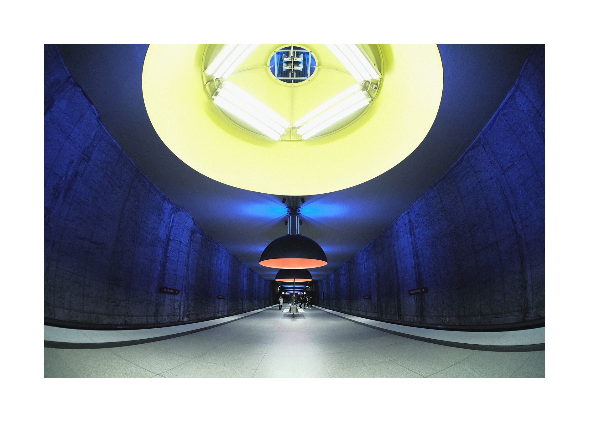Aber heute erfahre und lerne ich bewusst, dass man das LCD der Kamera als Gehirnverlängerung nutzen kann. Mit aufgesetztem Fischauge und eingeschalteter Kamera wandere ich die U-Bahnstation ab und betrachte die Welt nur durch das Weitwinkelobjektiv. Eine Verlagerung der Kameraposition um wenige Zentimeter liefert oft schon eine völlig veränderte Perspektive.