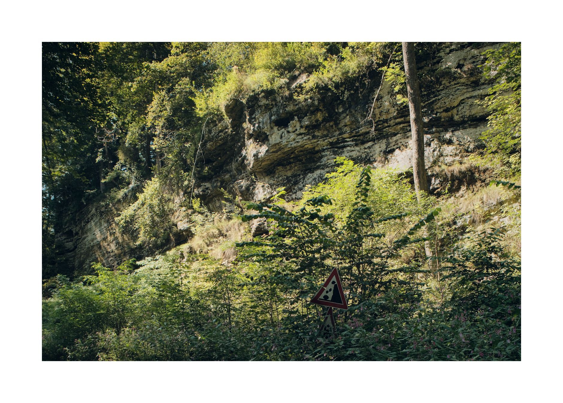 Unter der Autobahnbrücke hindurch und rechts den Hang hinauf. Haarsscharf vor der Bahnunterführung wieder rechts ab und oberhalb des Quellschutzgebietes entlang weiter zur Autobahnbrücke. Unter der Brücke ist auch eine Brücke! Hier führt in einer weiteren Ebene unterhalb der Fahrbahn ein Fuß- und Radweg entlang. Wegen einer Baustelle sollen die Radfahrer absteigen. Aufgrund ihrer tollen Sonnenbrillen können die diesen Hinweis wahrscheinlich gar nicht lesen...