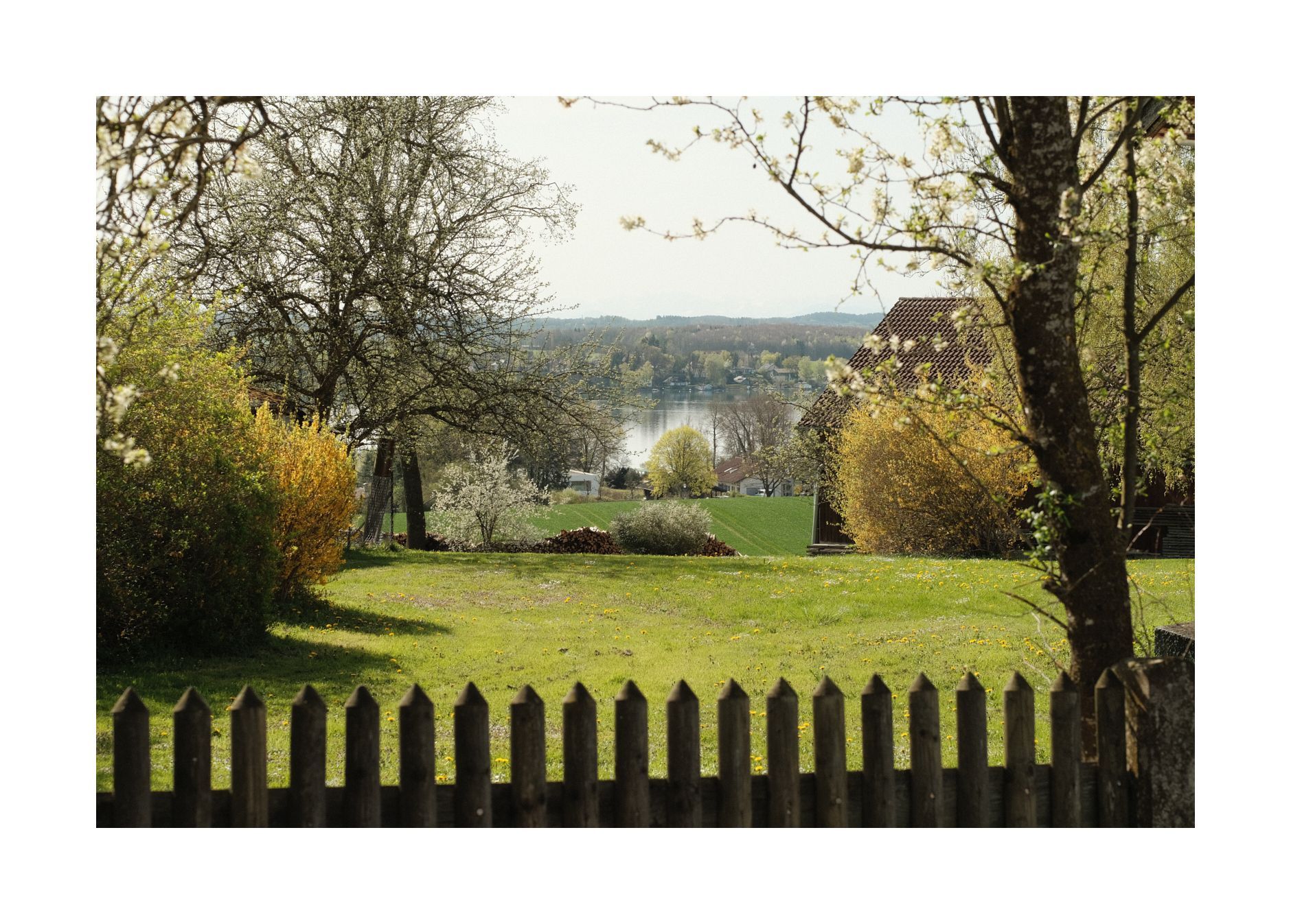 Oberhalb von Bachern gibt es einen sehenswerten Aussichtspunkt, der den Blick auf den Wörthsee und bis zu den Alpen freigibt. Etwas rechts davon ragt Andechs in den bayerischen Himmel, dahinter die Zugspitze. Ein Mann auf der Bank spricht mich an. Er war Berufsfotograf und hat ein paar Tipps für weitere Motive auf Lager. Früher hat er u.a. Bap fotografiert. Heute arbeitet er an einer Website über spirituelle Fotografie... Rolle ich eigentlich mit den Augen oder dreht sich nur mein Magen um? Jedenfalls enden die Gemeinsamkeiten an dieser Stelle. Es hätte eine legendäre Freundschaft werden können!