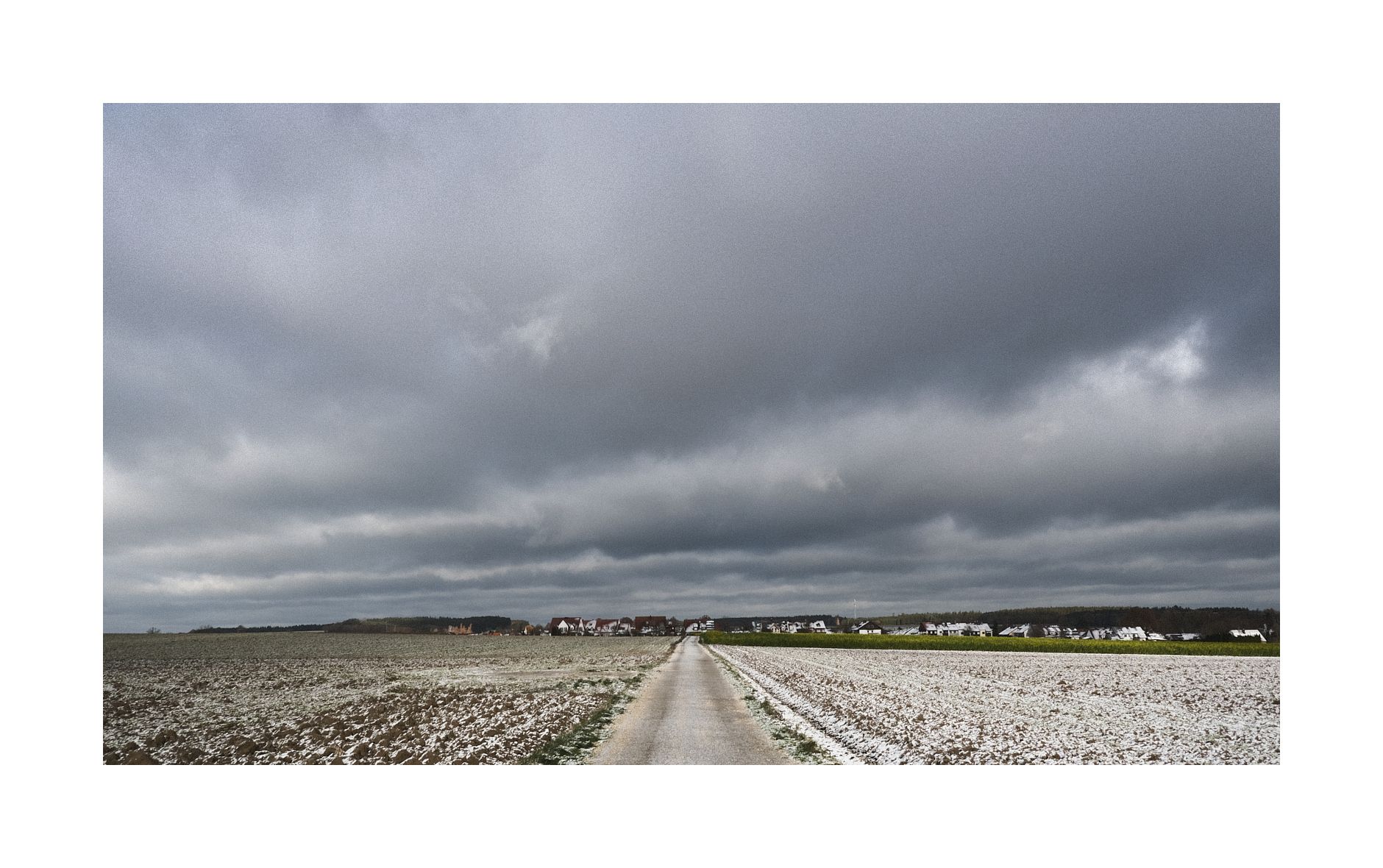 Ich greife diese Anekdote auf und experimentiere selbst mit dem Horizont. Vielleicht fehlt mir hier im Tertiärhügelland einfach die Weite des amerikanischen Westens, um Kapital aus der dramatischen Positionierung des Horizonts zu schlagen. Tatsächlich ist es aber das erneute Fehlen eines Motivs, das diese Versuche scheitern lässt. Es fehlt schlicht das Objekt, das in eine Beziehung zur Horizontlinie tritt.